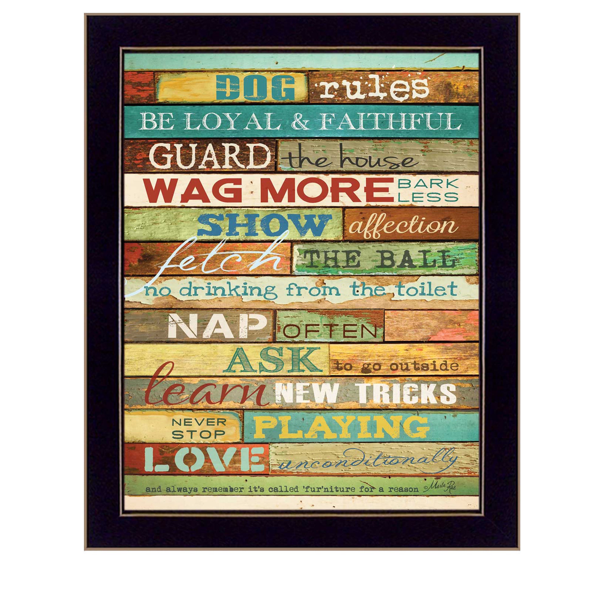 'Dog Rules' By Marla Rae, Printed Wall Art, Ready To Hang Framed Poster, Black Frame