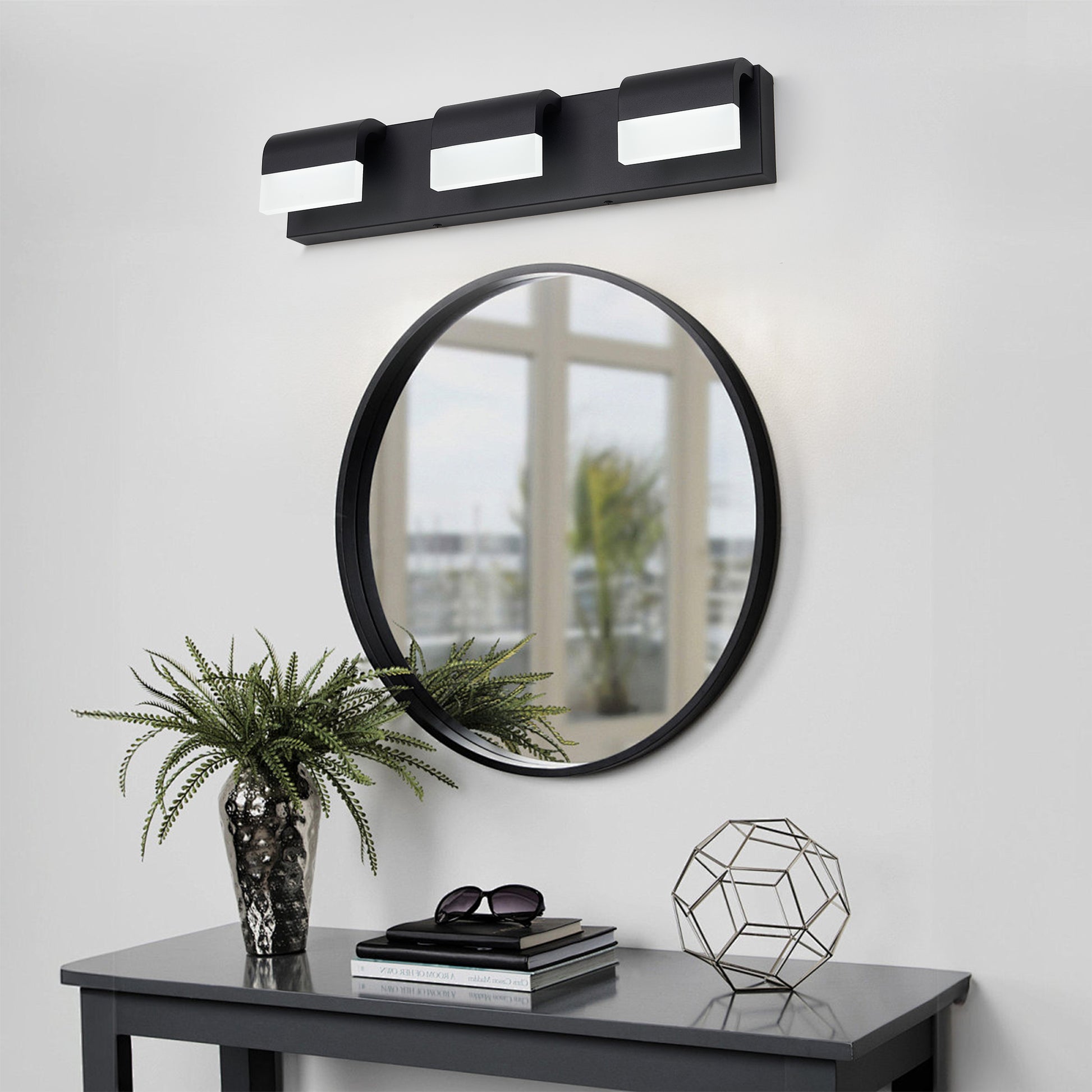 LED Contemporary Vanity Lights Fixture Bathroom Wall Light Over Mirror Matt Black 3 Lights Dimmable