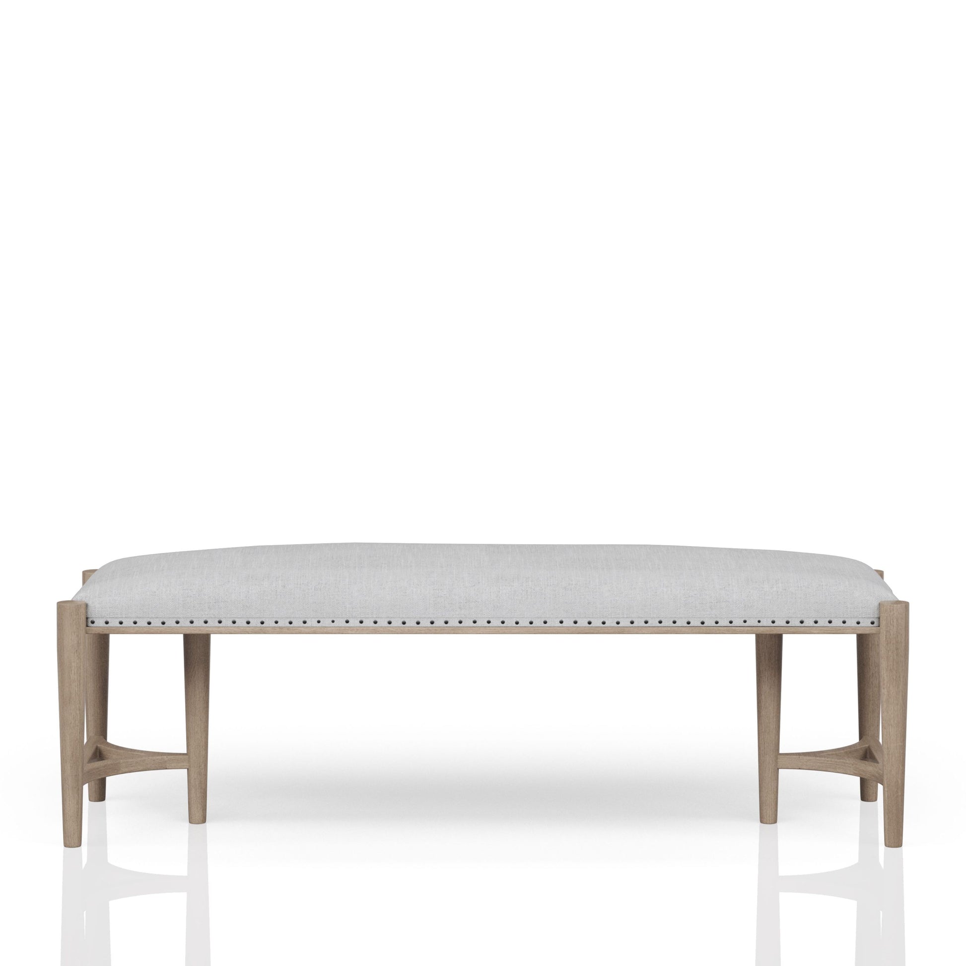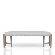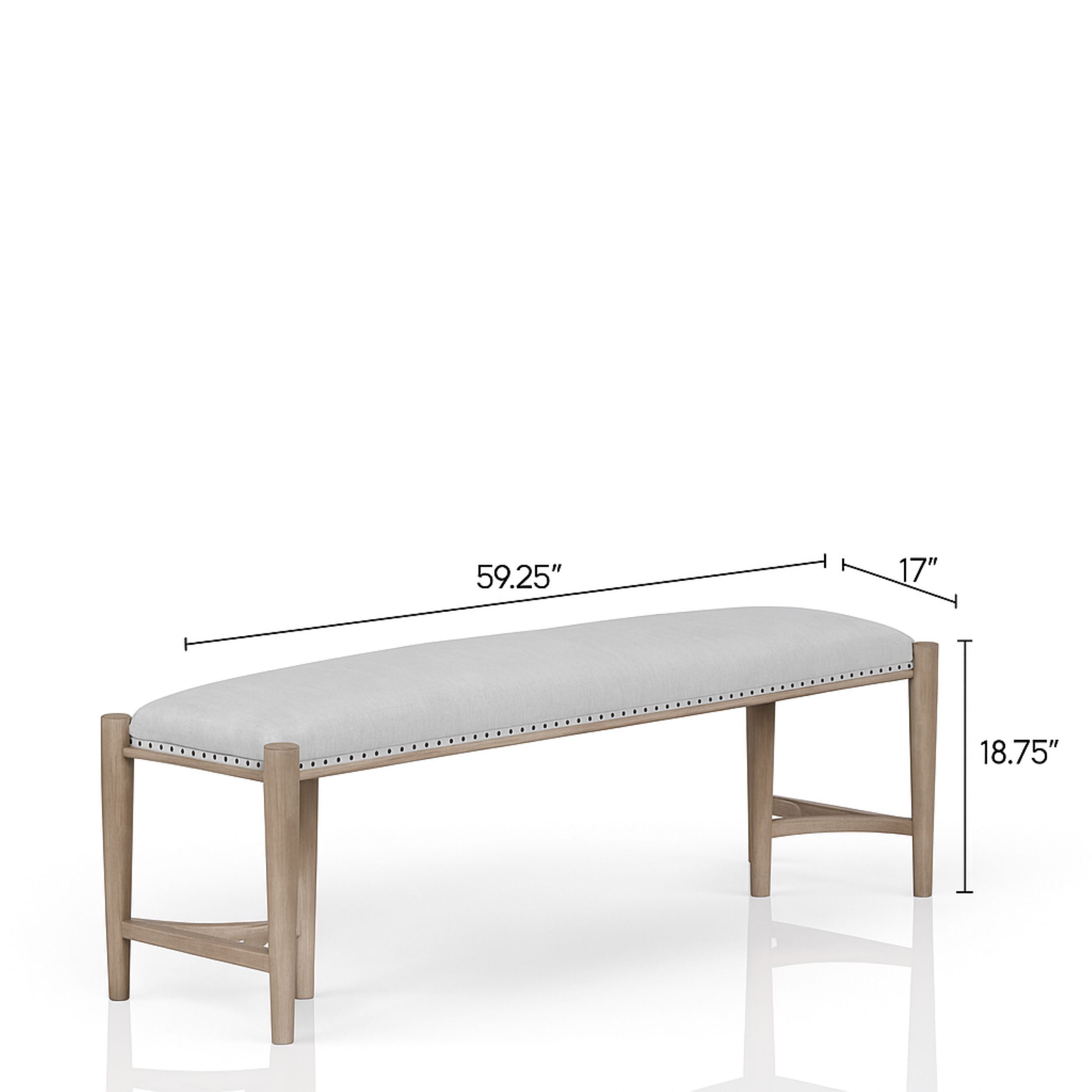Elegant Sand Colored Bench with Upholstered Seat and Nail Head Trim in Solid Wood and MDF