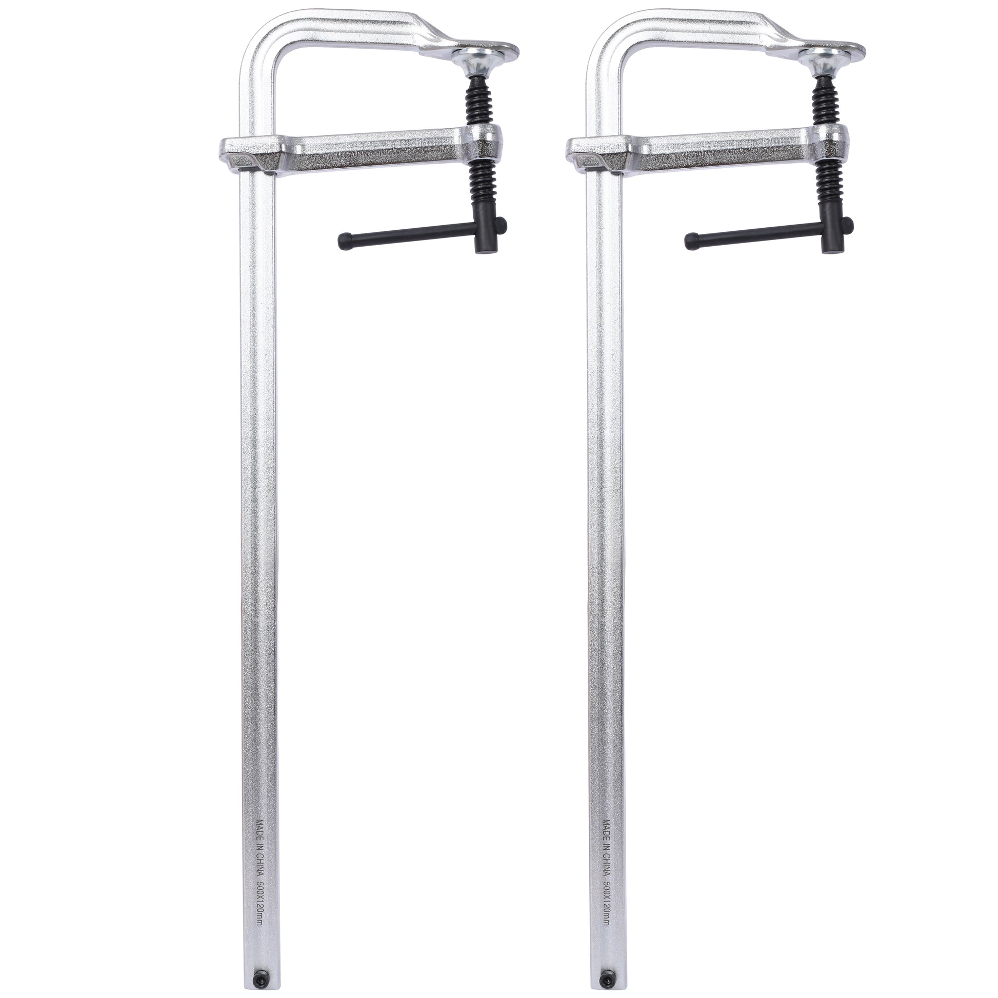 - The F-clamp is expertly crafted from drop-forged 40 Cr alloy steel, offering exceptional strength and resilience. This high-quality construction ensures outstanding durability, making it the ideal tool for heavy-duty woodworking and metalworking projects. Max jaw opening: 20'/500mm; Throat depth: 4 3/4'/120mm; Clamping force: 1400 lbs.
