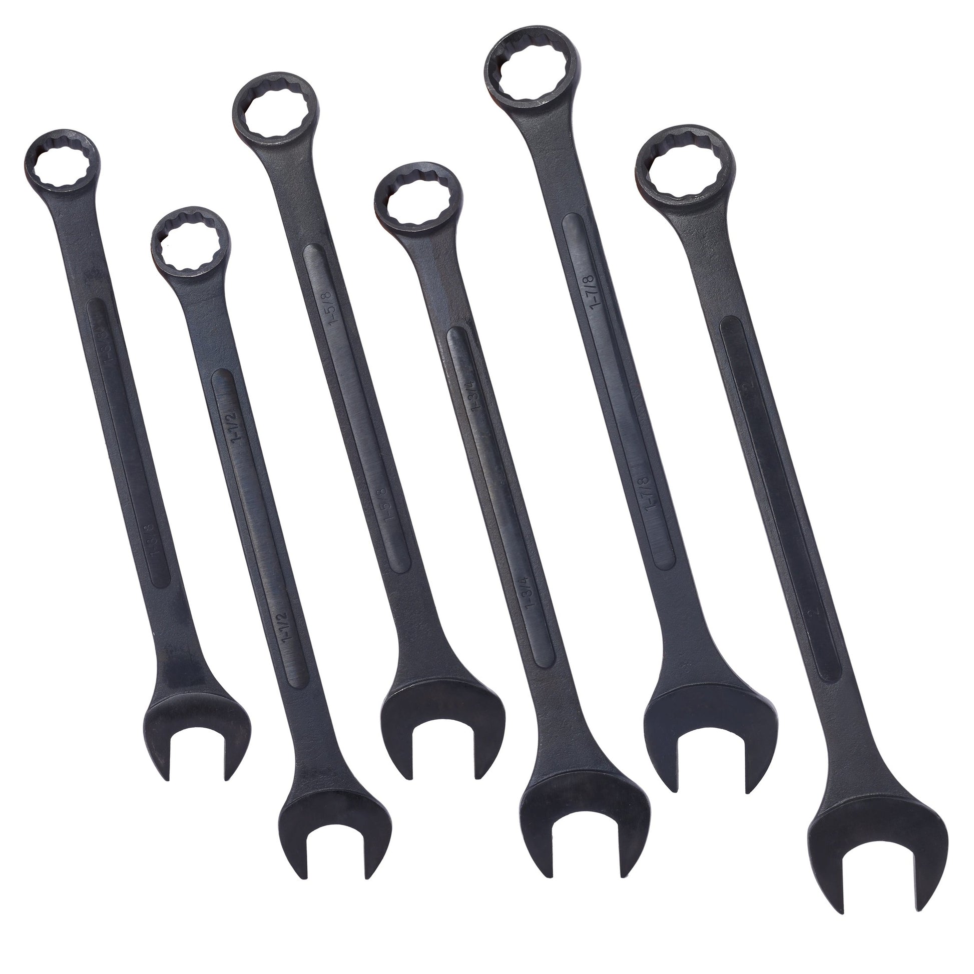 Jumbo Combination Wrench Set extra large, SAE, 6-piece, 1-3/8'' to 2'',Black Oxide, with Pouch