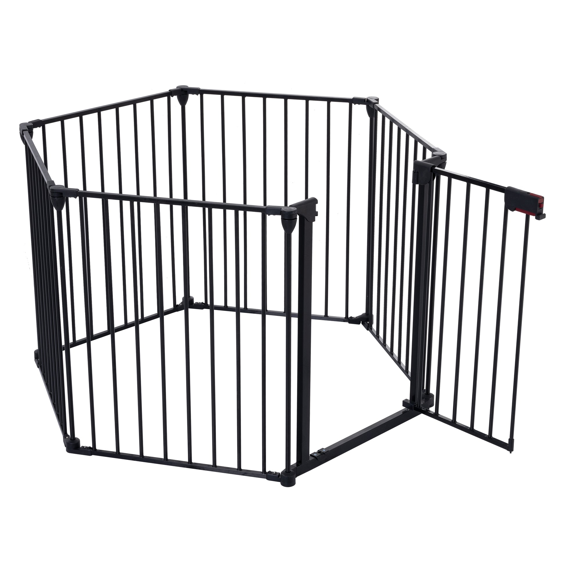 - 4-IN-1METAL SAFETY GATE: 1. Pet Gate - It can be used as a freestanding pet gate when you set it up as a circular enclosure; 2. Safety Fence - Suitable to use around fireplaces, grills, wood burning stoves, Christmas tree, etc. 3. Play yard: Set up sectioned off areas in your home for your toddlers or pets; 4. Barrier: Solid construction make this a great option for creating room dividers; 5. Baby Gate - Great for wide spaces, angled openings, hallway, doorway or bottom of stairs