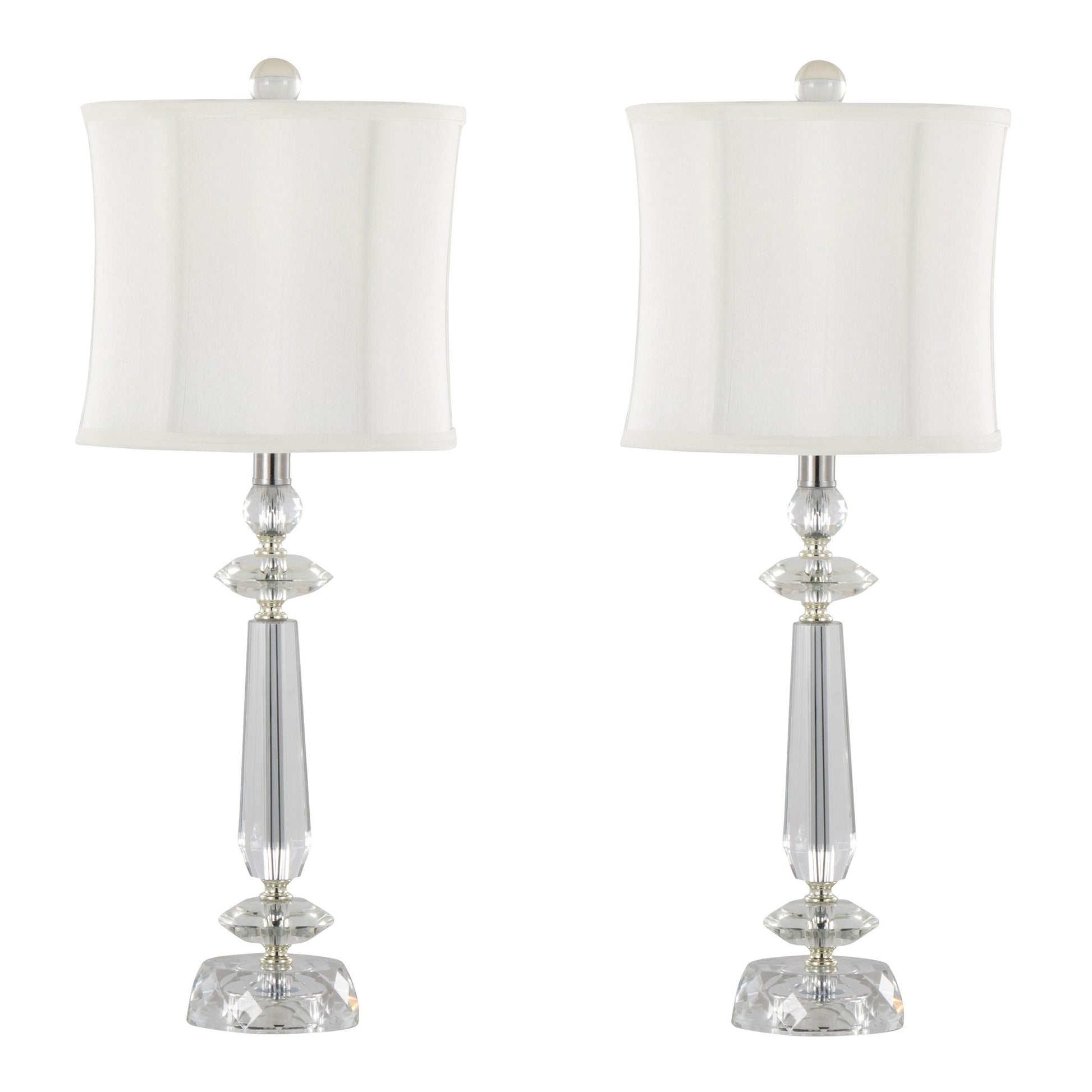 Karat 25.5' Contemporary Crystal Table Lamp in Clear K9 Crystal and Chrome Metal with White Linen Softback Shade from Grandview Gallery by LumiSource - Set of 2