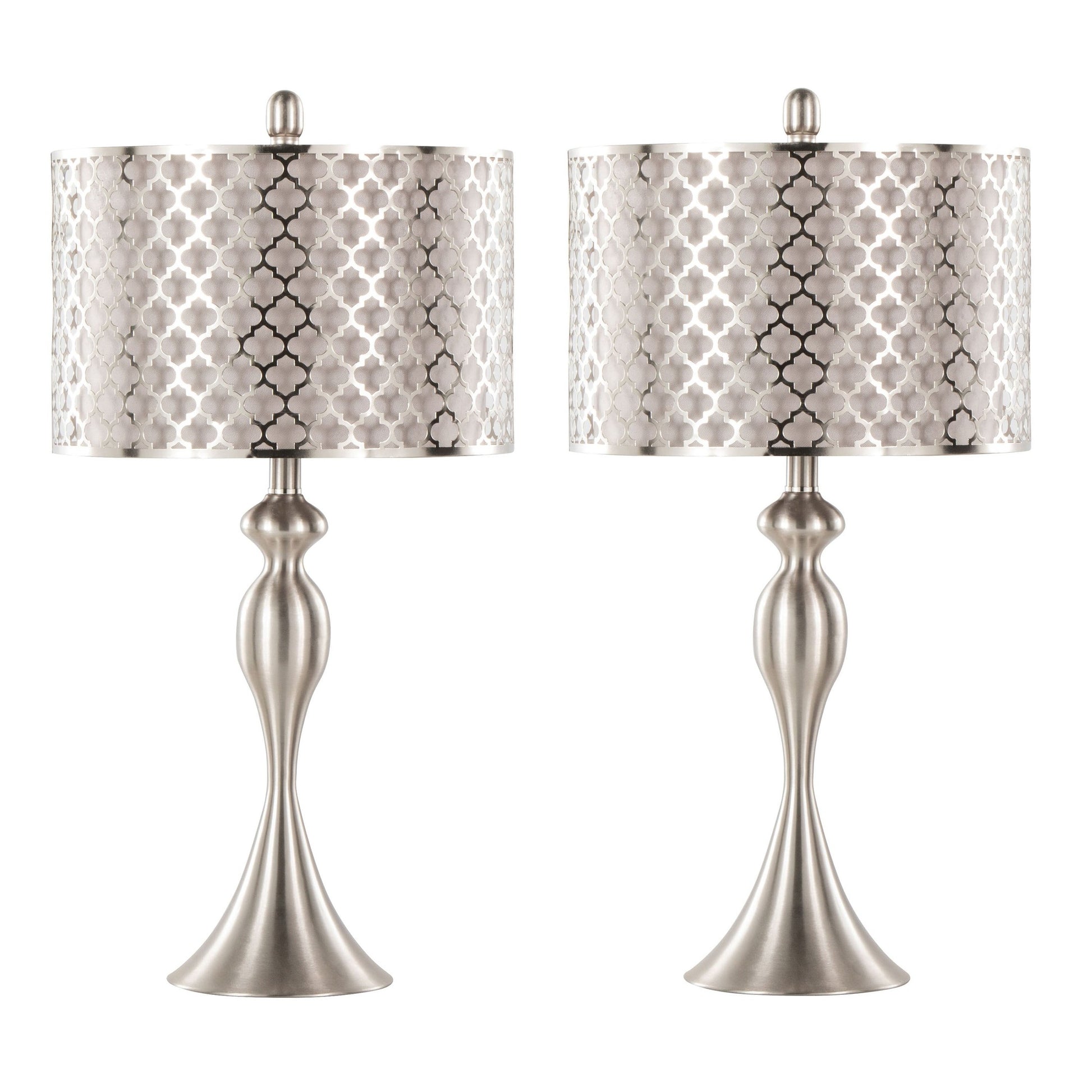 Ashland 27' Contemporary Metal Table Lamp in Brushed Nickel with Light Grey Linen and Brushed Nickel Laser Cut Shade from Grandview Gallery by LumiSource - Set of 2