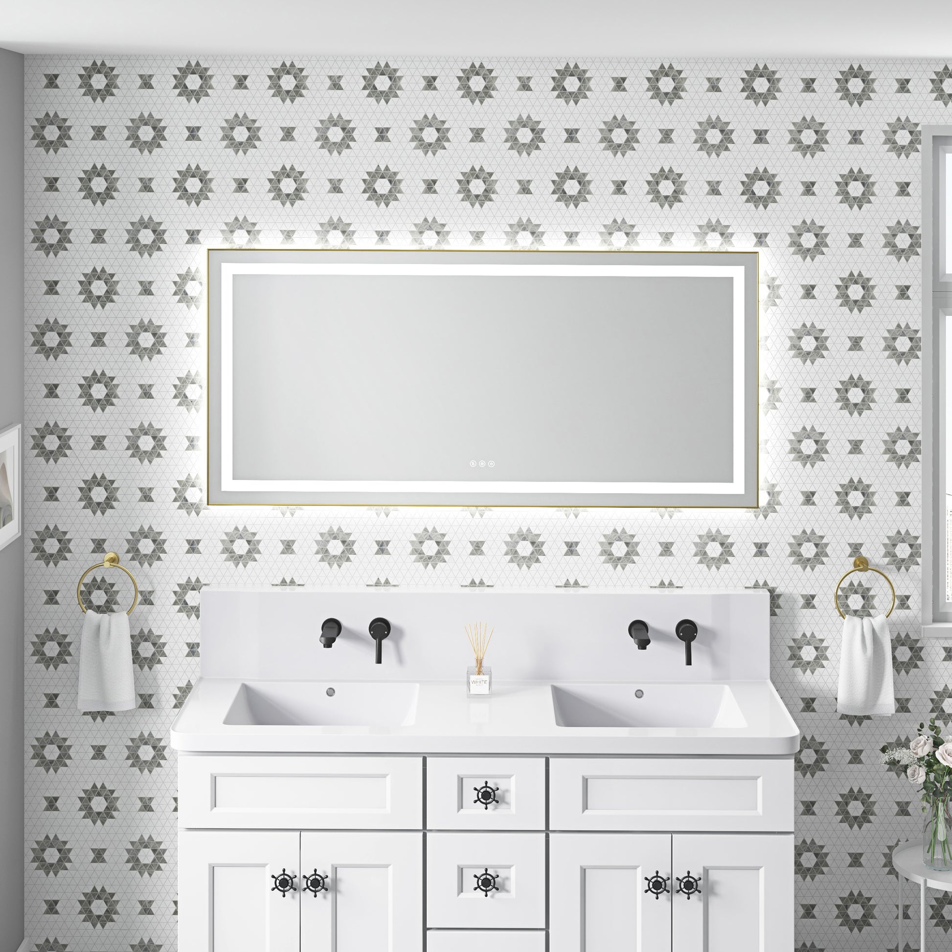 60' x 28' LED Bathroom Mirror with Front and Backlight, Wall Mounted Vanity Mirror with Aluminum Frame, Anti-Fog, Memory, 3 Colors, Stepless Dimmable