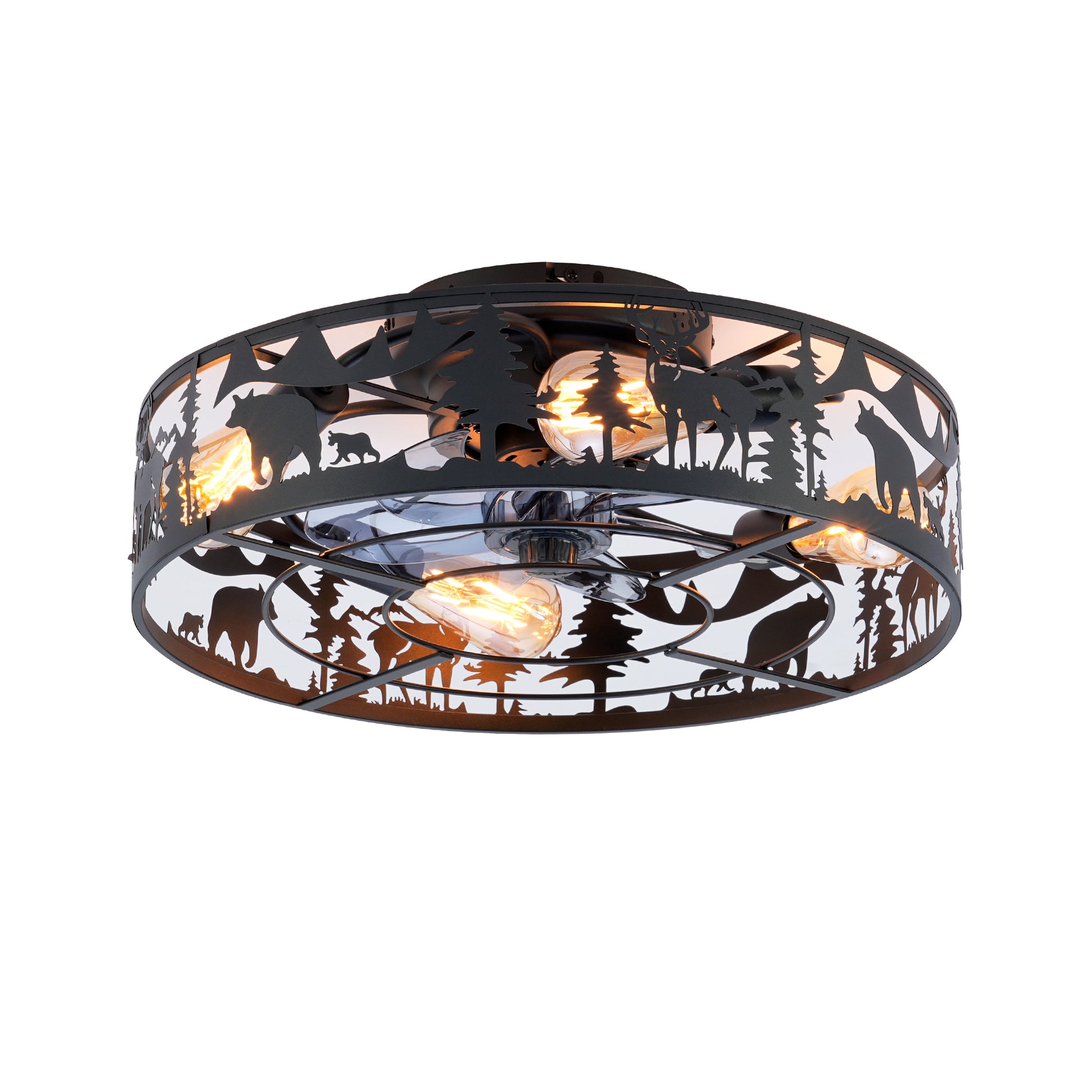20' Caged Ceiling Fans with Remote, Bladeless Ceiling Fan 6 Speed Reversible with Remote Control,Flush Mount Caged Ceiling Fan for Bedroom, Living Room--NOT Included Bulbs--Matte Black