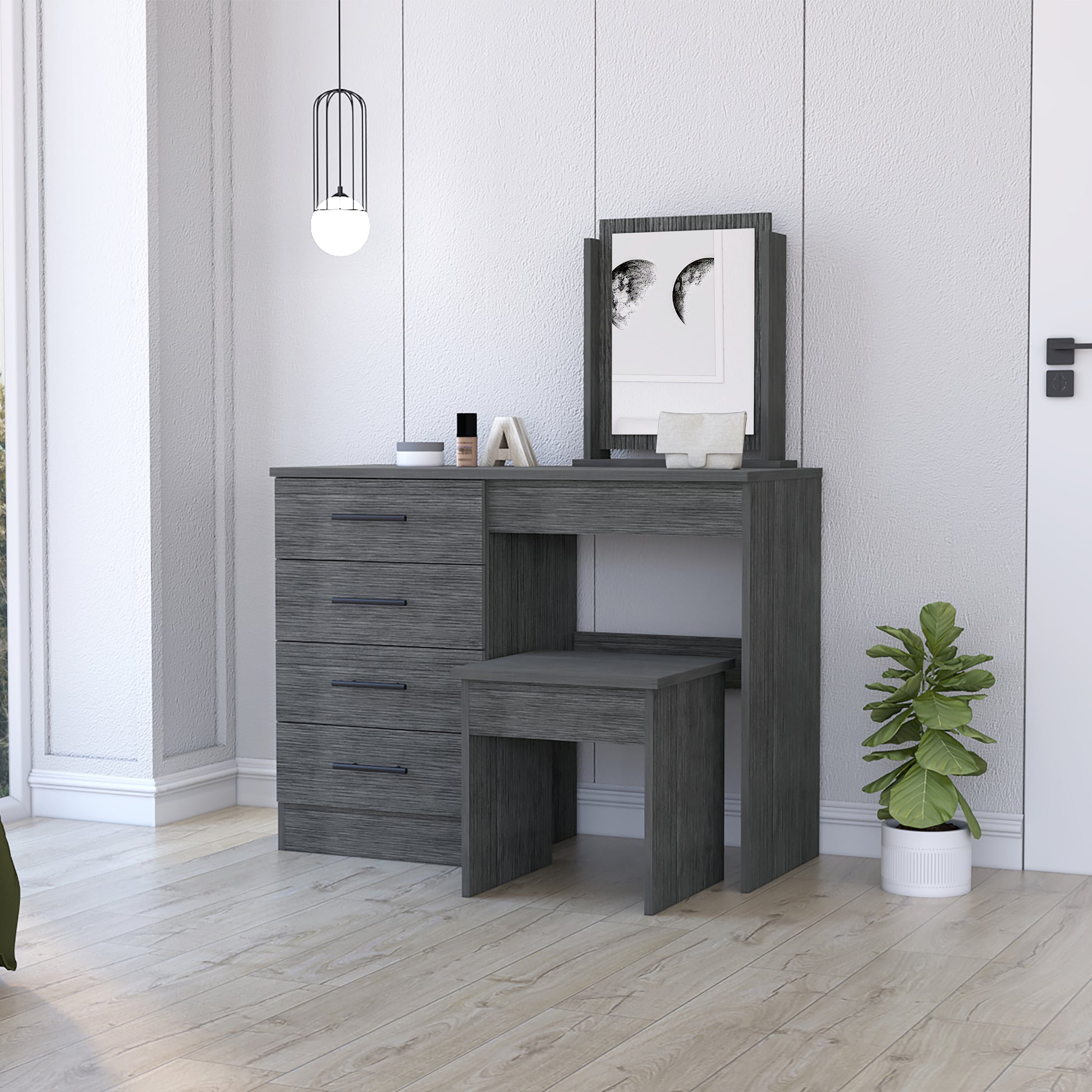 Stonington 4-Drawer Makeup Dressing Table with Stool Smokey Oak