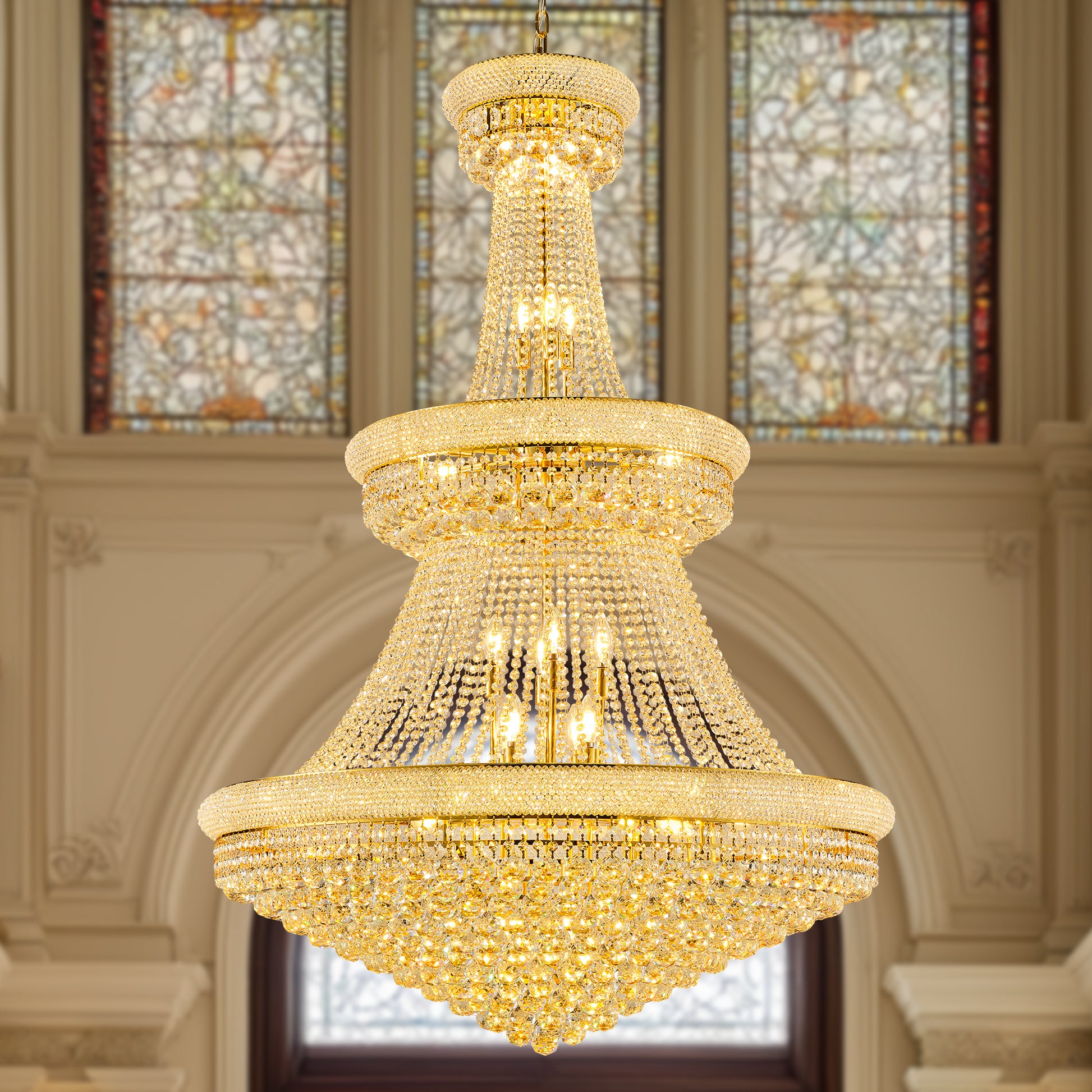 - 【Exquisite 3-Tier Luxury Design】 -- This 42-inch, 61-inch-tall crystal chandelier features a grand three-tier empire silhouette that creates a dramatic focal point for double-height living rooms, staircases, and hotel lobbies. Its cascading form and sparkling crystals transform any space into an elegant gallery of light.