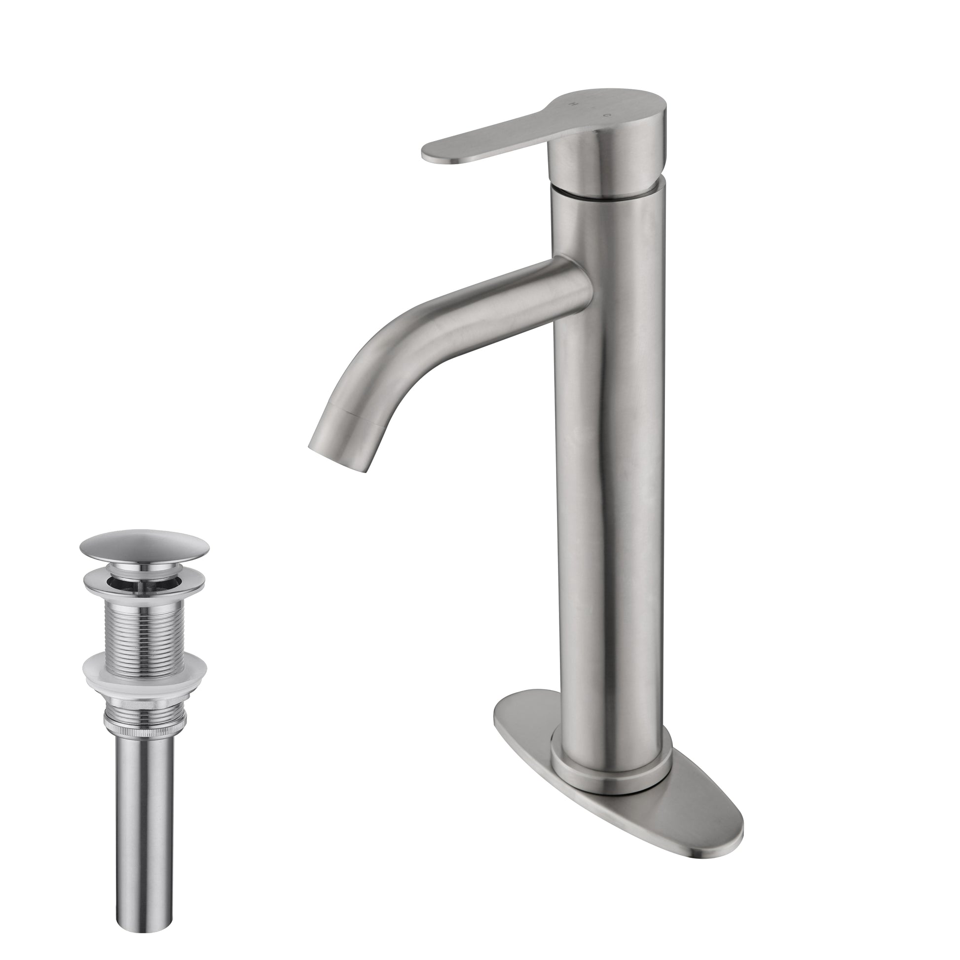 Bathroom Sink Single Handle Faucet with Pop-Up Drain (No Overflow)