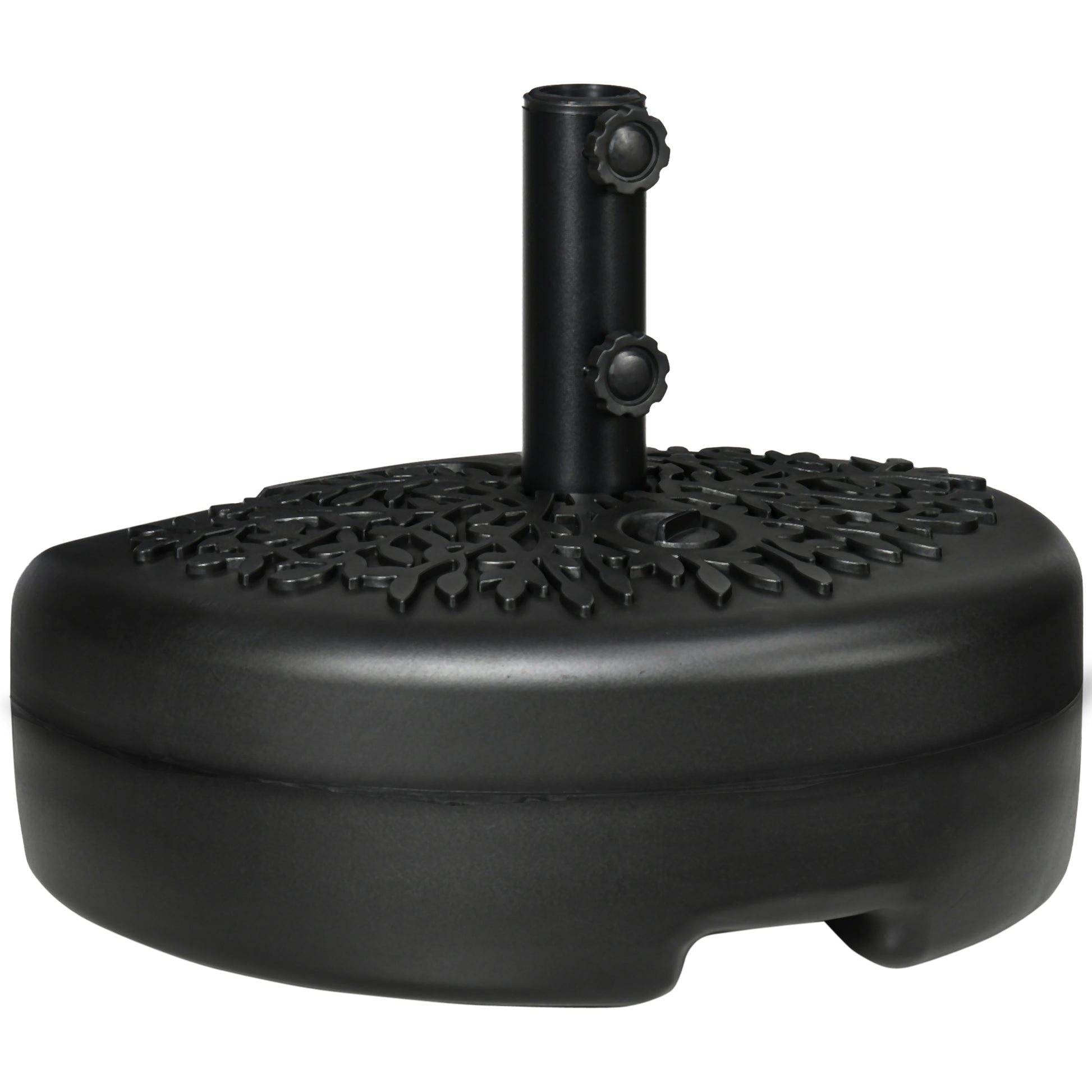 - FILLABLE UMBRELLA BASE: Our half umbrella stand can hold 40 lbs. of water or 46 lbs. of sand. You can also fill with dry sand and then add water to increase the weight. It features a filling port for easy use and cleaning.