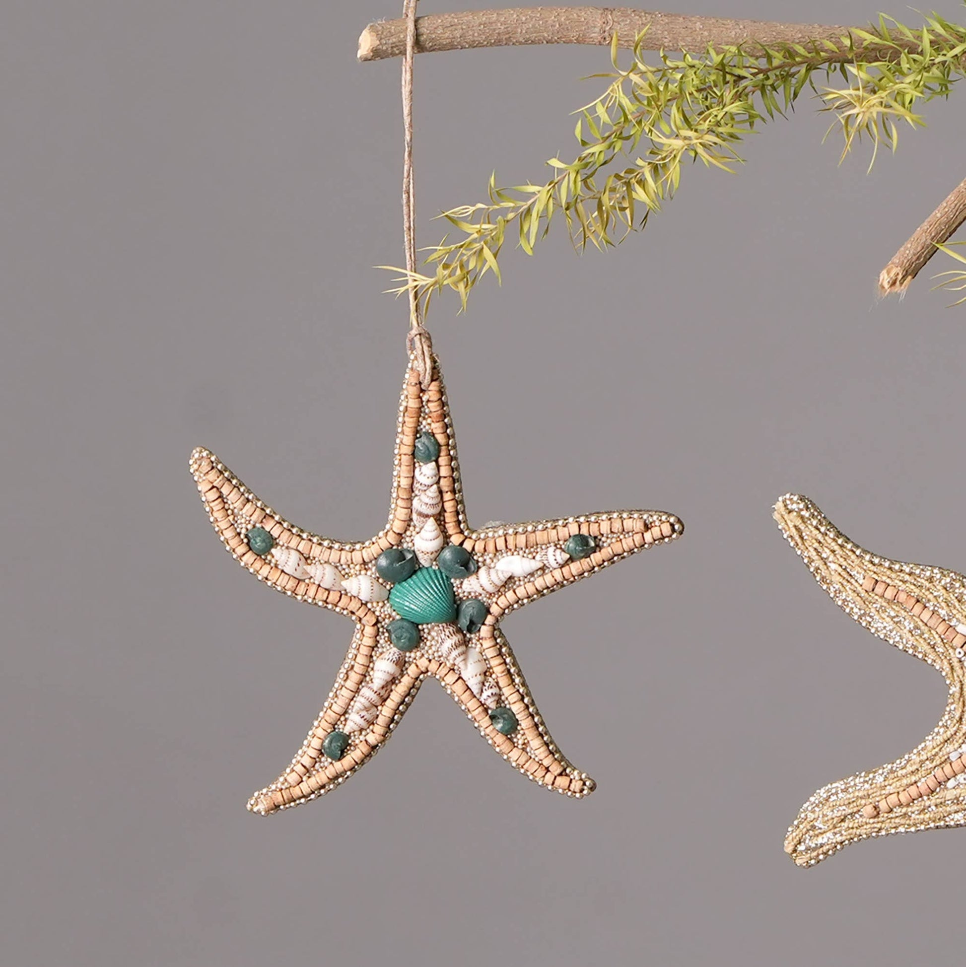 - Dive into the holiday spirit with our Wooden & Shell Beaded Lac Starfish Ornament.