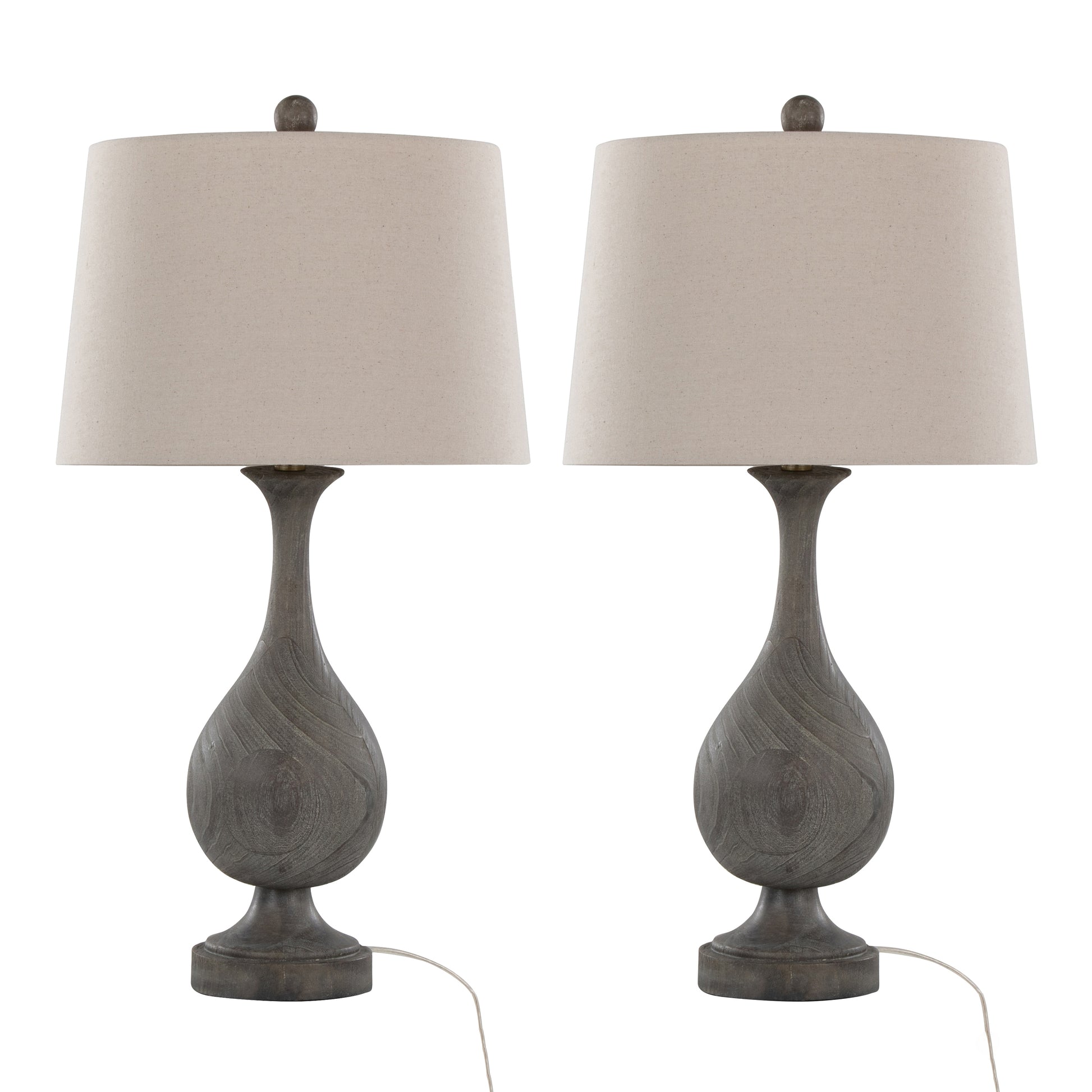 - Add a rustic design element to your space with the Cipolla Table Lamp from Grandview Gallery by LumiSource. This polyresin lamp features a tapered linen drum shade and faux wood design and showcases a teardrop body with an hourglass stem. Whether resting on your nightstands, set on side tables in the den, or tucked into your favorite reading nook, this set of lamps adds a touch of warmth to any space.