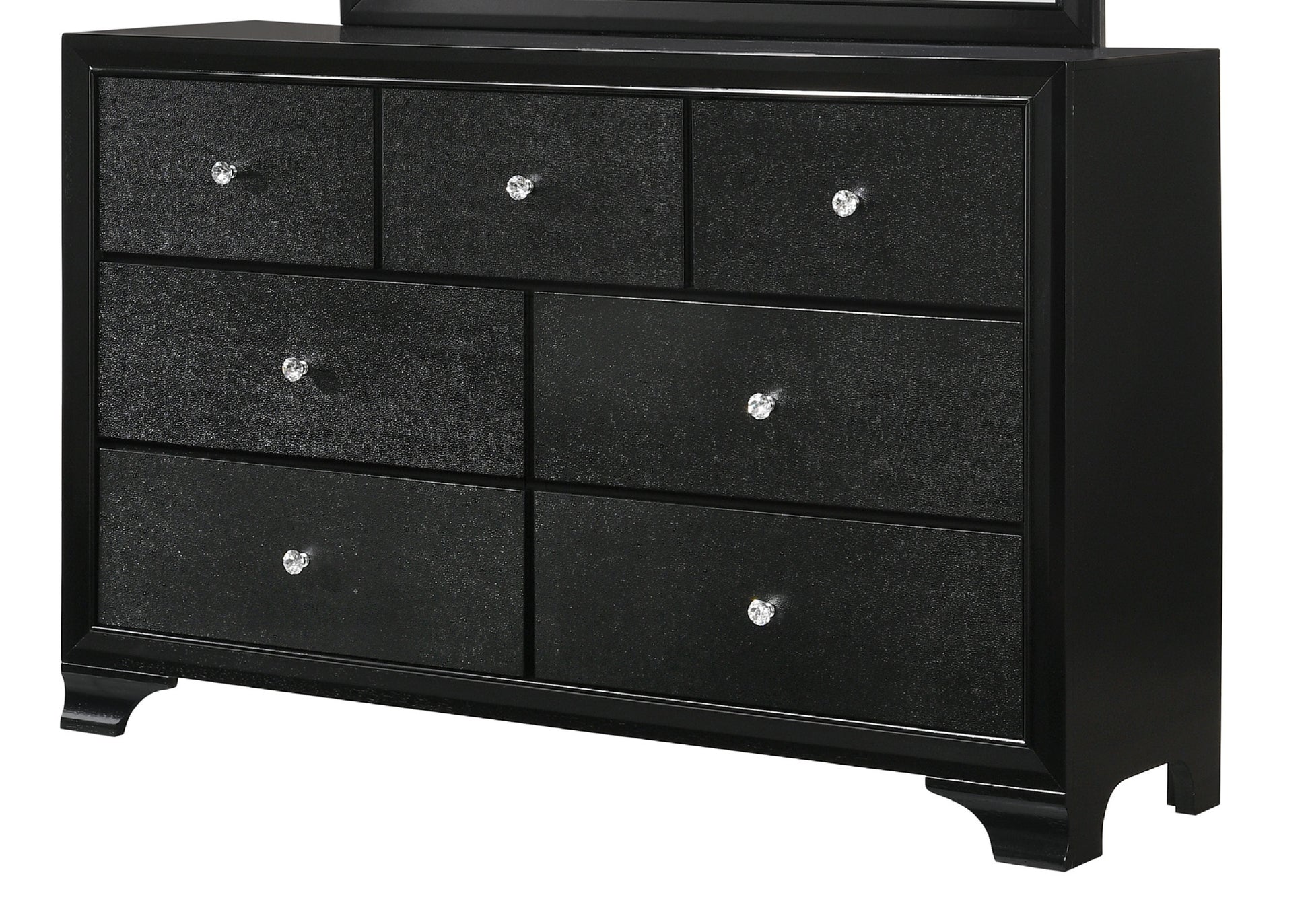1pc Modern Glam Style Black Finish Glam Seven Drawer Dresser Embossed Crocodile Pattern Wooden Bedroom Furniture