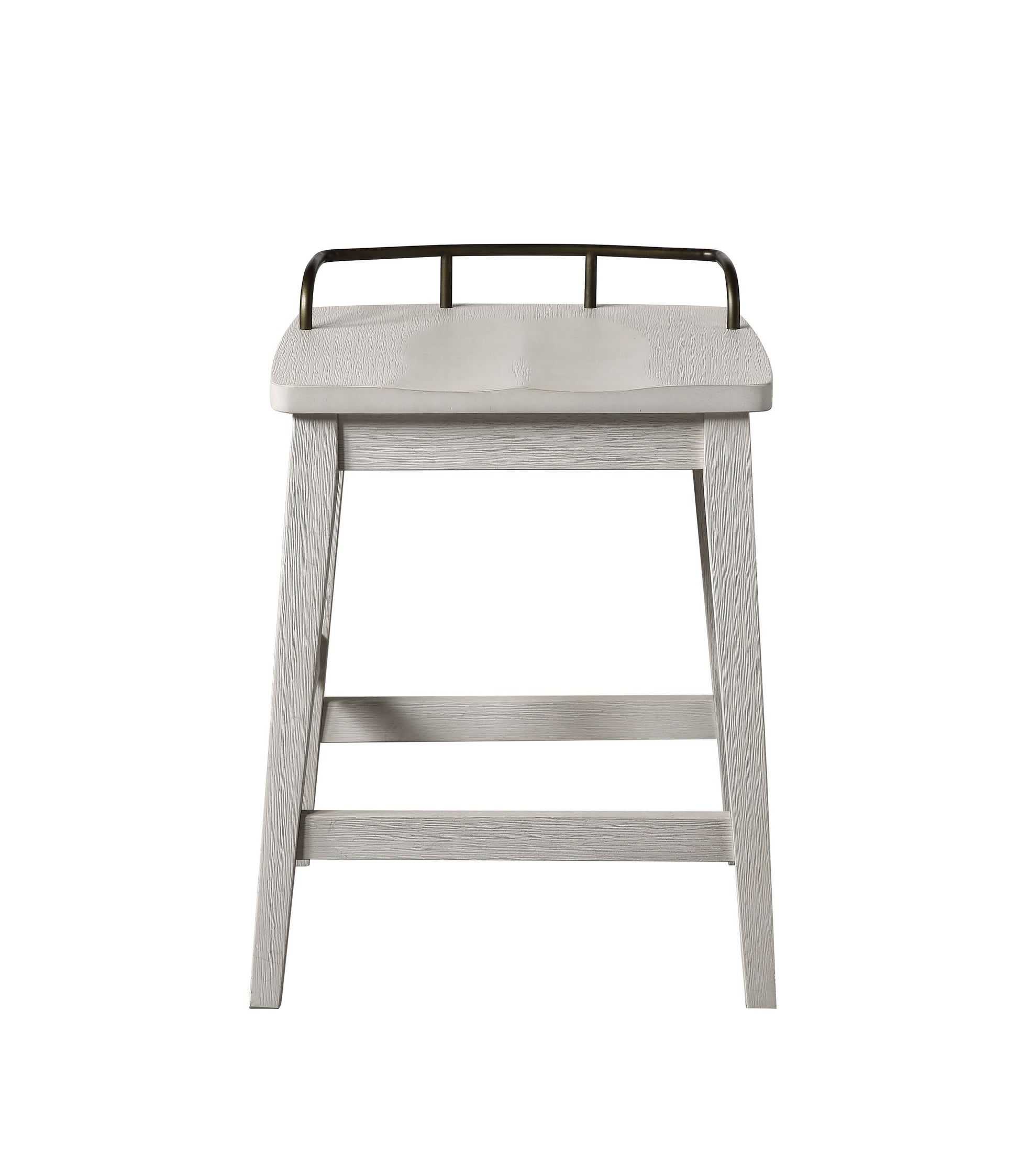 - Oil-rubbed brass galley rail brings a touch of heritage styling to the stool