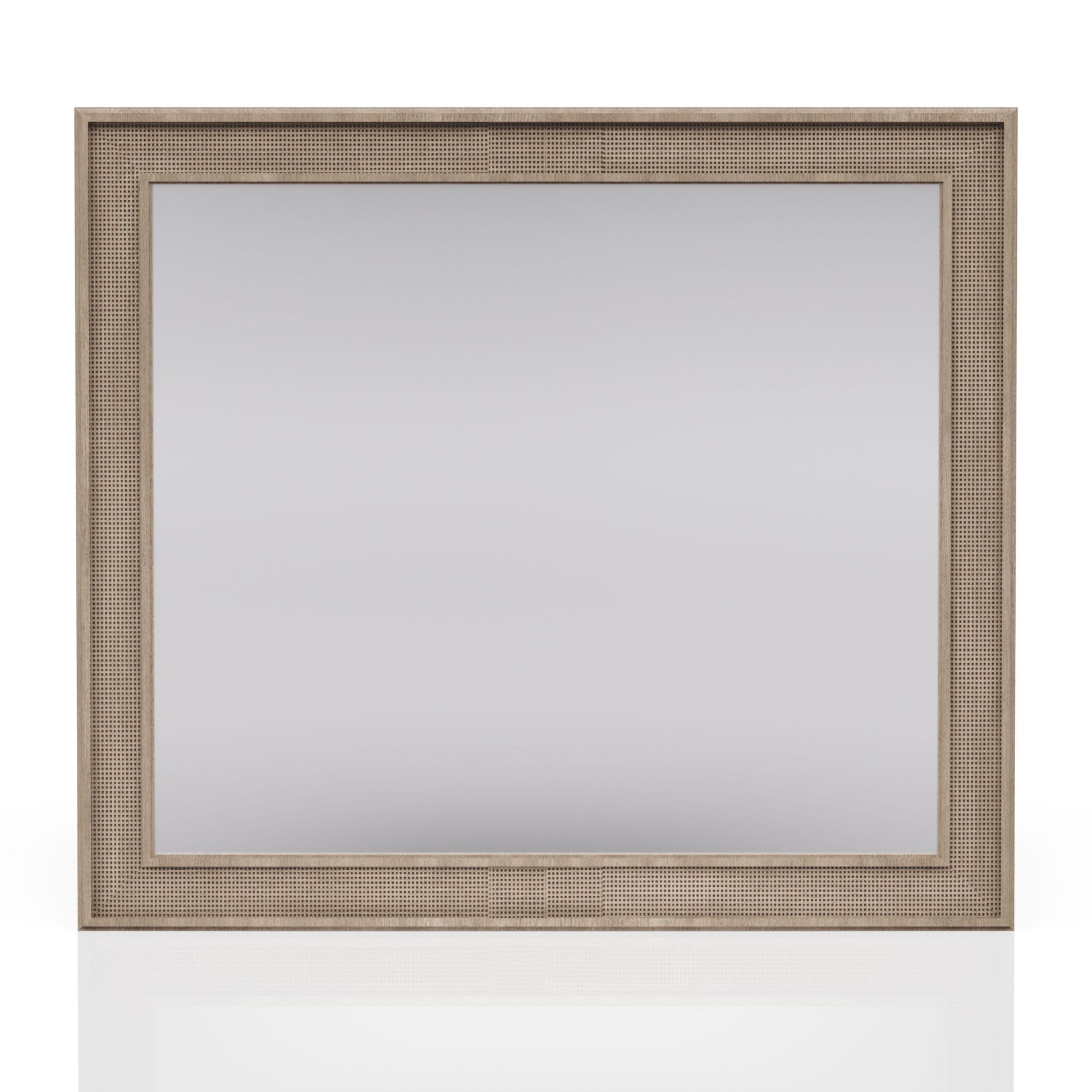Classic Sand Colored Cane Mirror with Beveled Glass and Rubberwood Frame