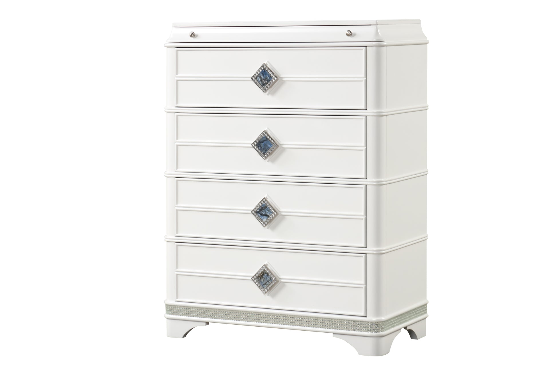Laguna Modern Style 4-Drawer Chest Made with Wood, Hidden Jewelry Drawer and Crystal Accents in White same asG150108979 ( NJ inventory)