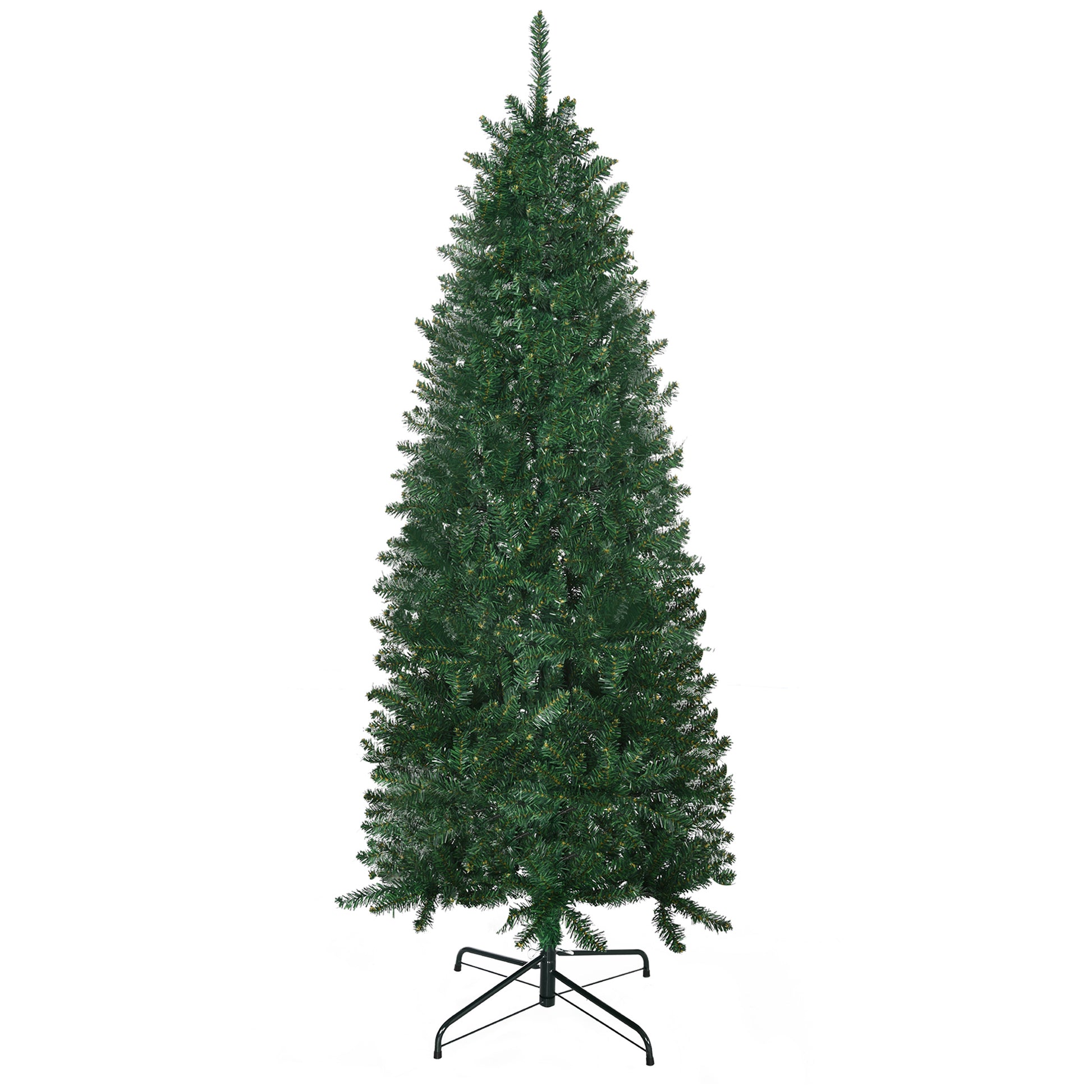 HOMCOM 6' Tall Unlit Slim Fir Artificial Christmas Tree with Realistic Branches, and 583 Tips, Green