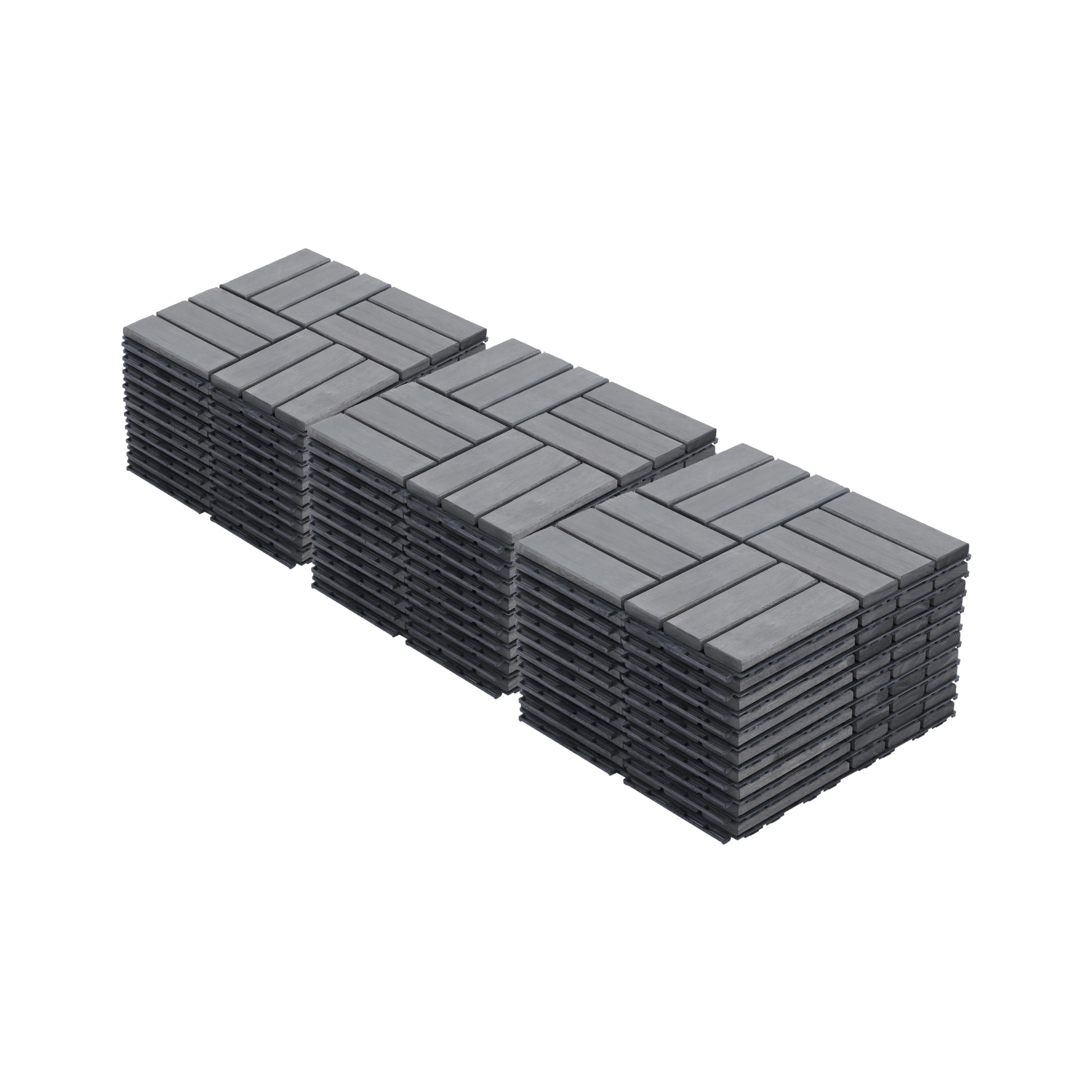 Light Gray Acacia Hardwood Interlocking Deck Tiles 30 PCS, Checker Pattern Outdoor Flooring, 12' x 12' for Patio, Balcony, Pool Side