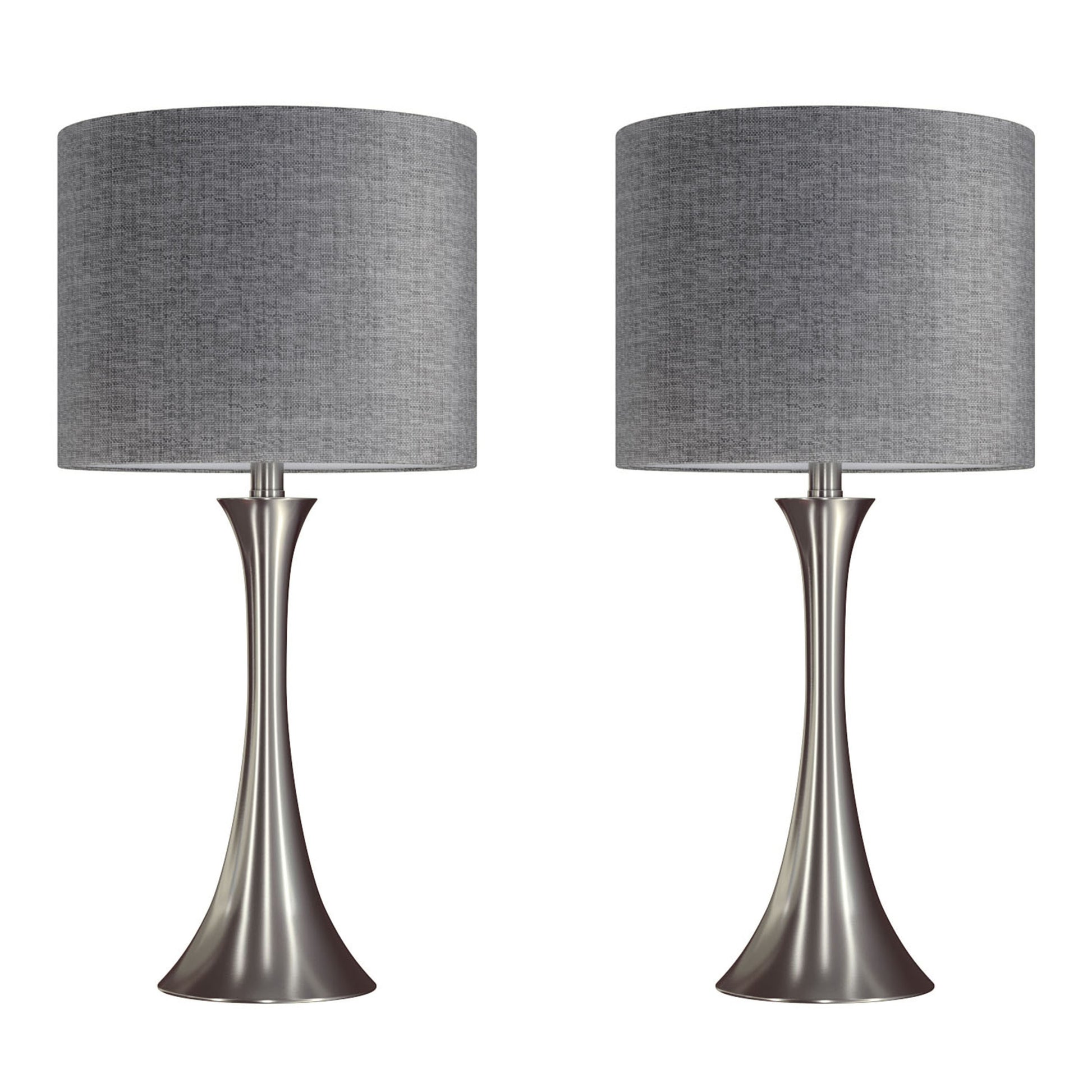 Lenuxe 24' Contemporary Metal Table Lamp in Brushed Nickel with Grey Textured Linen Shade from Grandview Gallery by LumiSource - Set of 2
