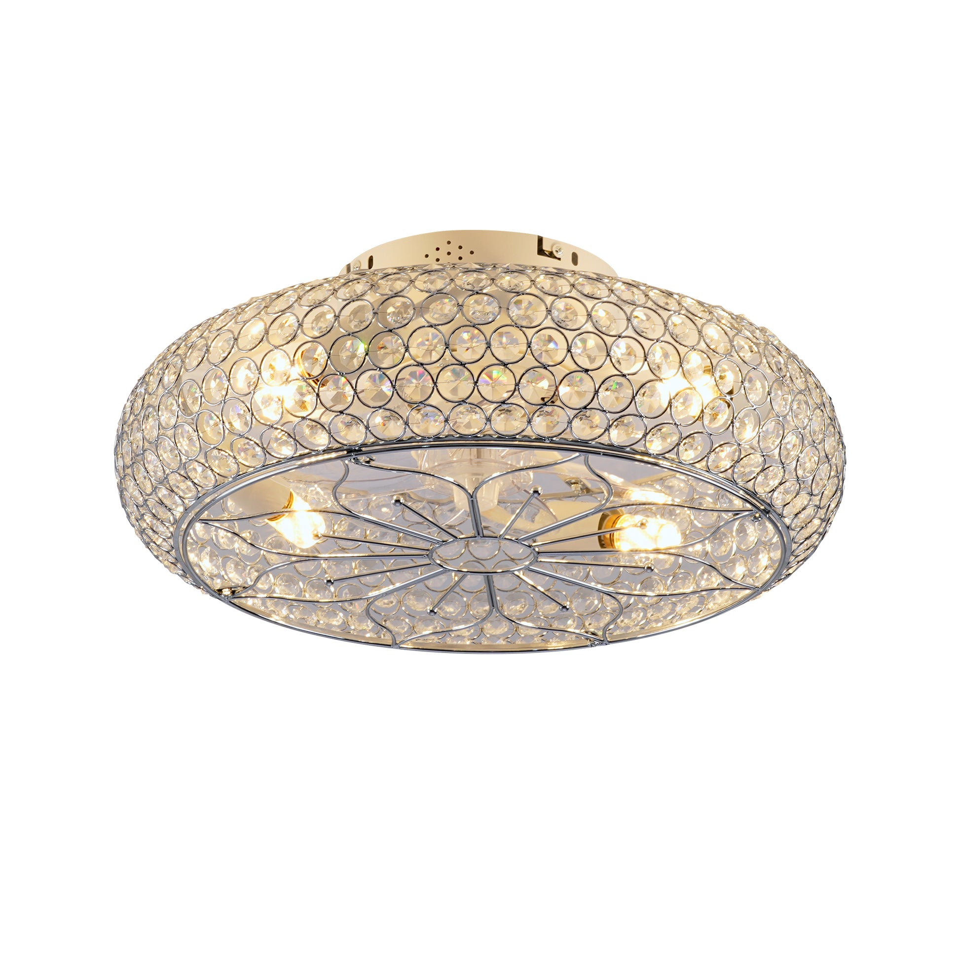 20'' Crystal Ceiling Fans with Remote, Flush Mount Ceiling Fan with Light, Chandelier Fan 6 Speed DC Motor Reversible Ceiling Fan For Living Room Bedroom.--NOT INCLUDED BULB