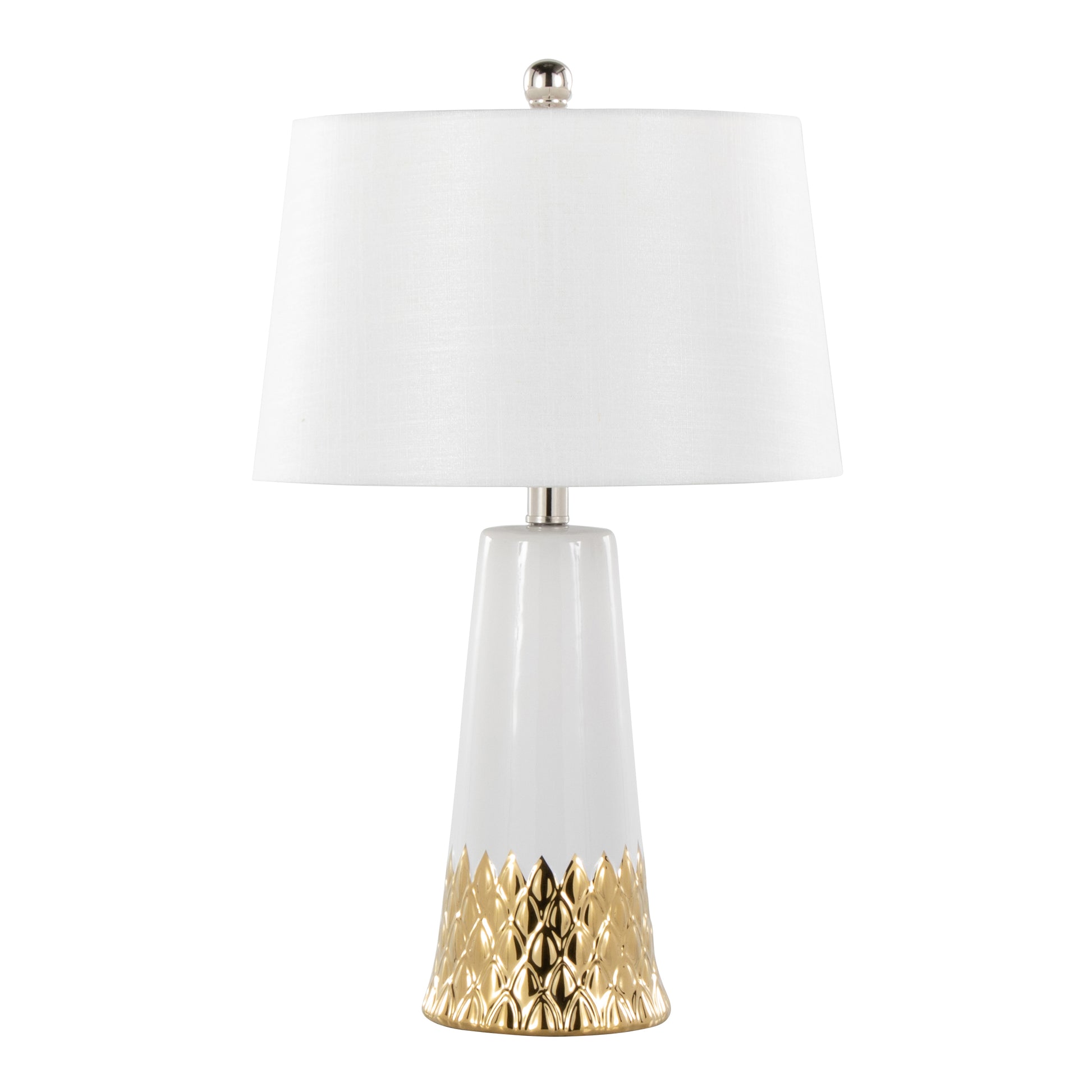 Penelope 22' Contemporary Ceramic Table Lamp with White & Gold Ceramic Body and White Shade by LumiSource