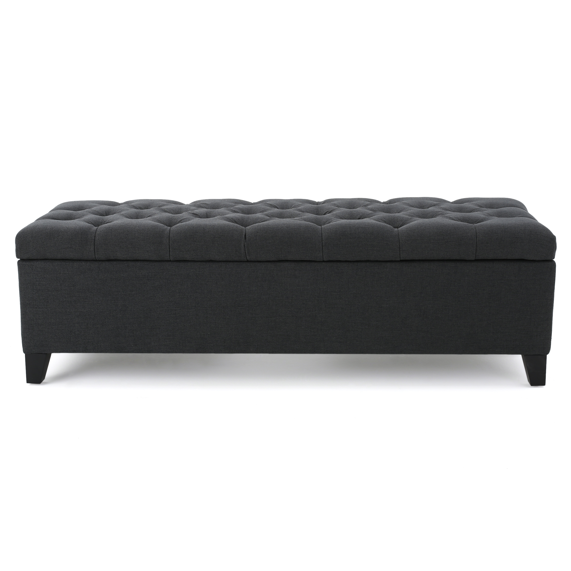 Glouster Contemporary Storage Ottoman V2 with Button-Tufted Diamond Stitching in Dark Gray Fabric