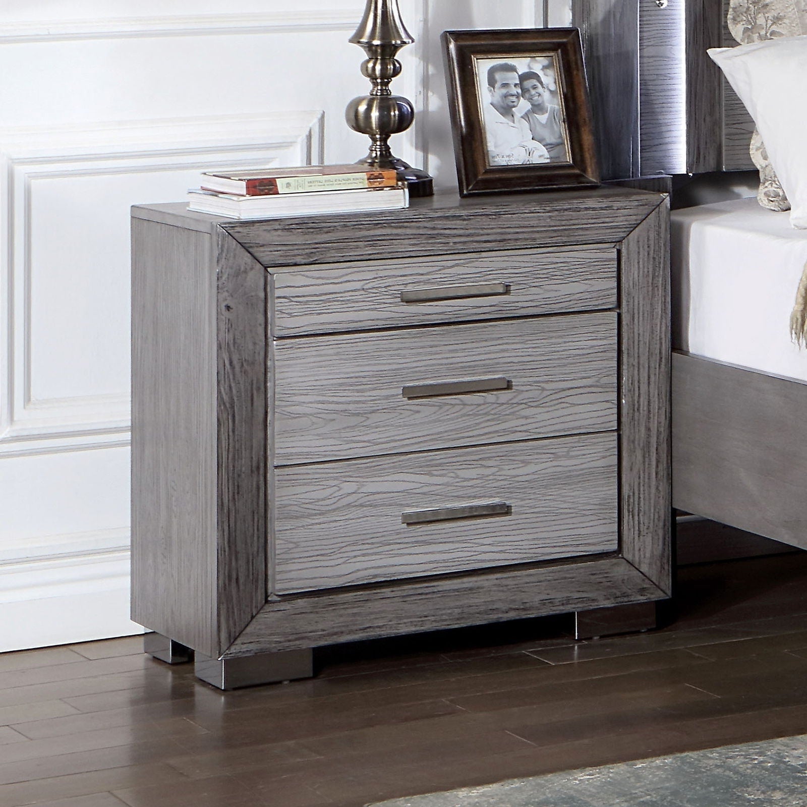 Gray Color Nightstand Bedroom 1pc Nightstand Solid wood Bar Handles 3-Drawers bedside Table Metal Bracket Legs USB Ports