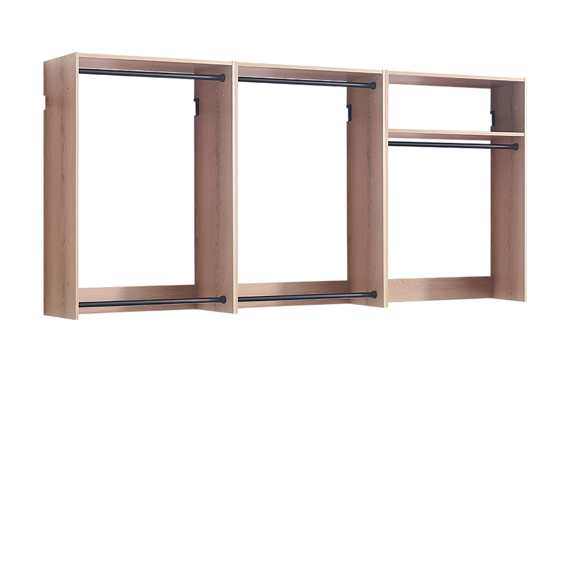 Devi Oak Wall Mounted Wood Closet System with Modular Units and Warm Finish