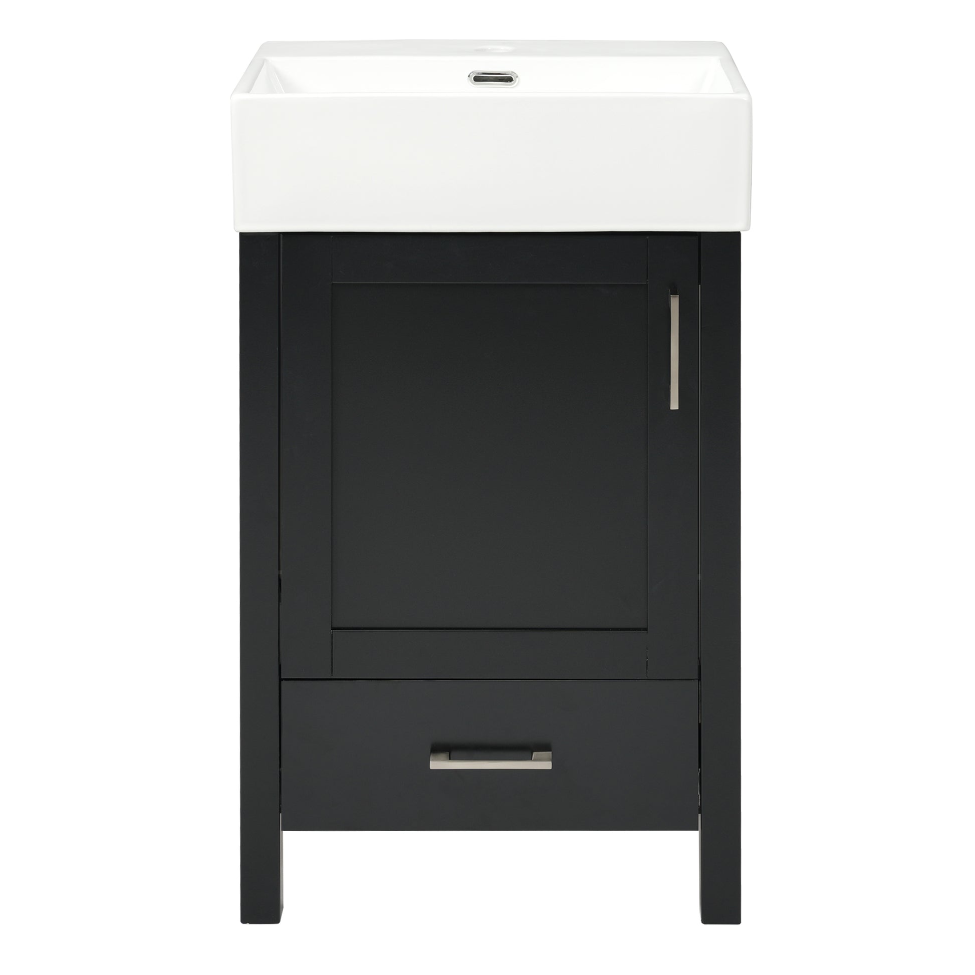 Modern Black Bathroom Vanity with Ceramic Sink, Solid Wood Frame and Drawer - 20.28 Inches