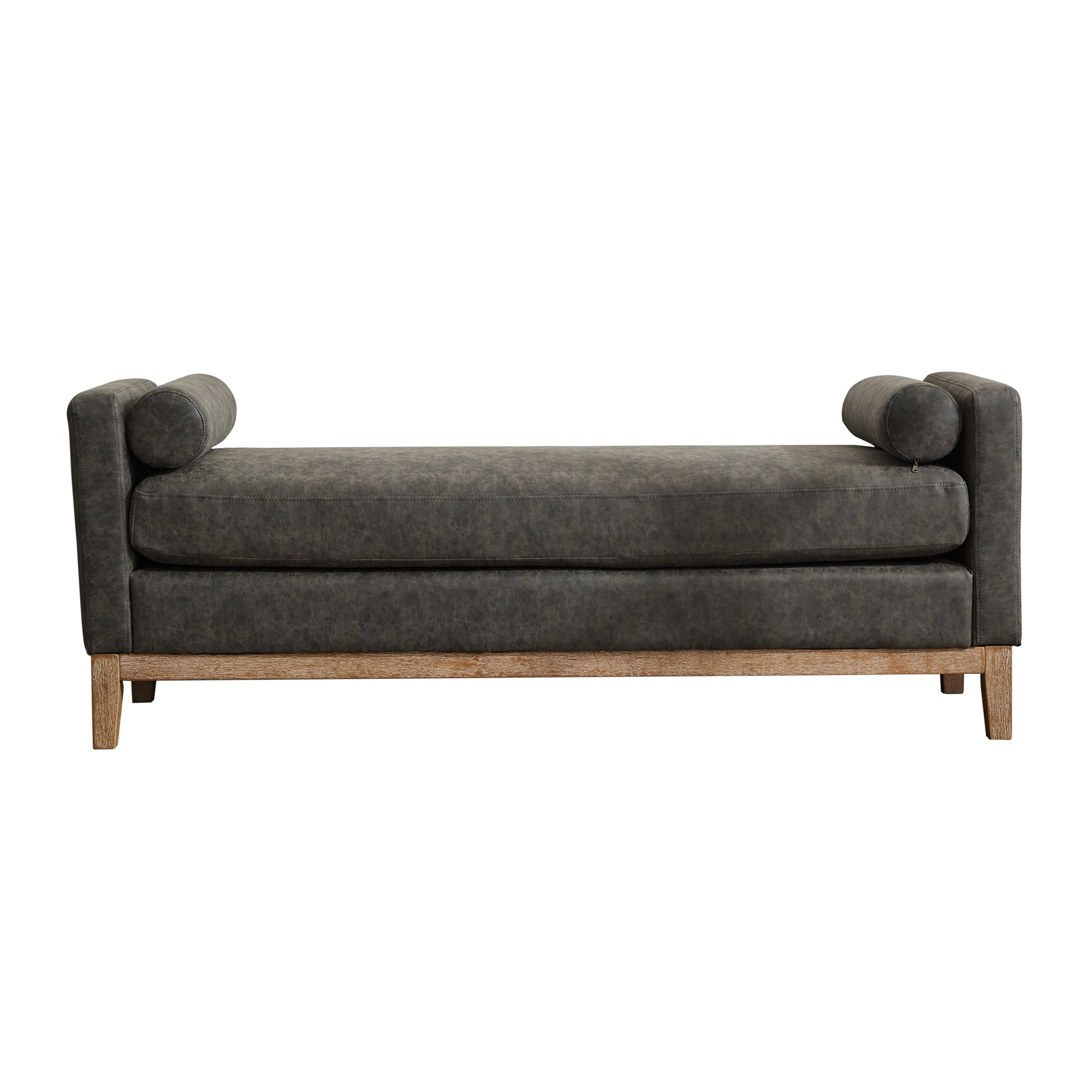 Elegant Upholstered Bench,Daybed,Ottman with Wood Legs & 2 Bolster Pillows, Gray PU, 66.34'W for Bedroom, Living Room, Entryway