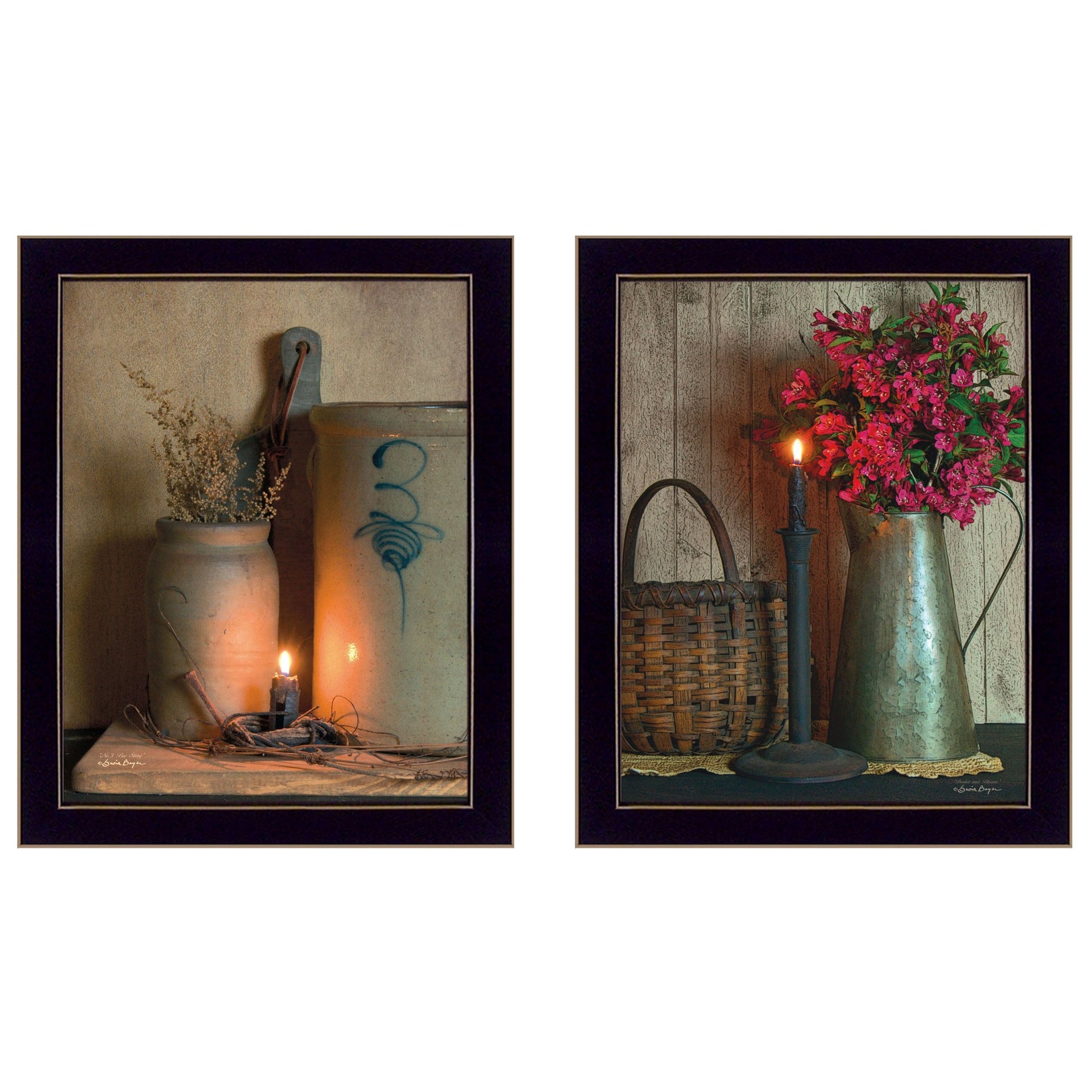 'Country Candlelight Collection' 2-Piece Vignette By Susie Boyer,, Ready to Hang Framed Print, Black Frame