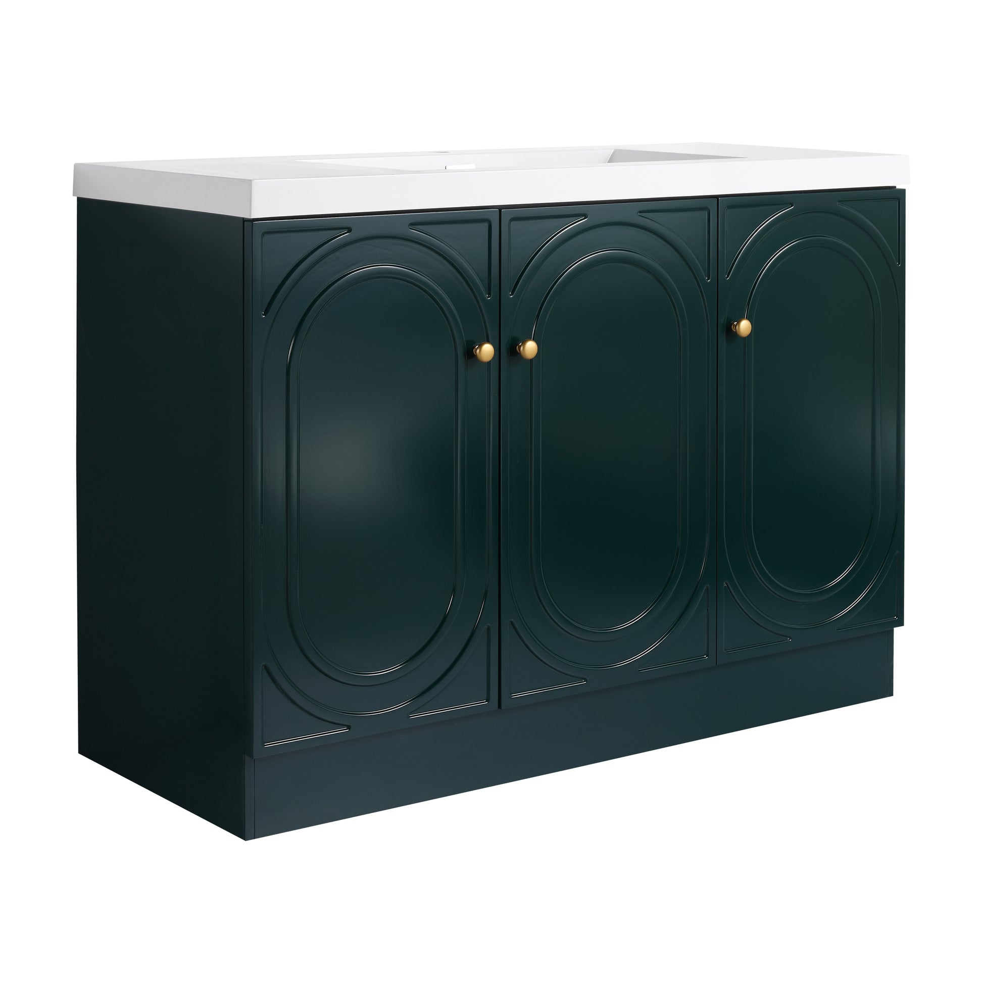 Modern 48' Freestanding Bathroom Vanity with White Resin Sink & 3 Soft-Close Cabinet Doors in Dark Green Plywood