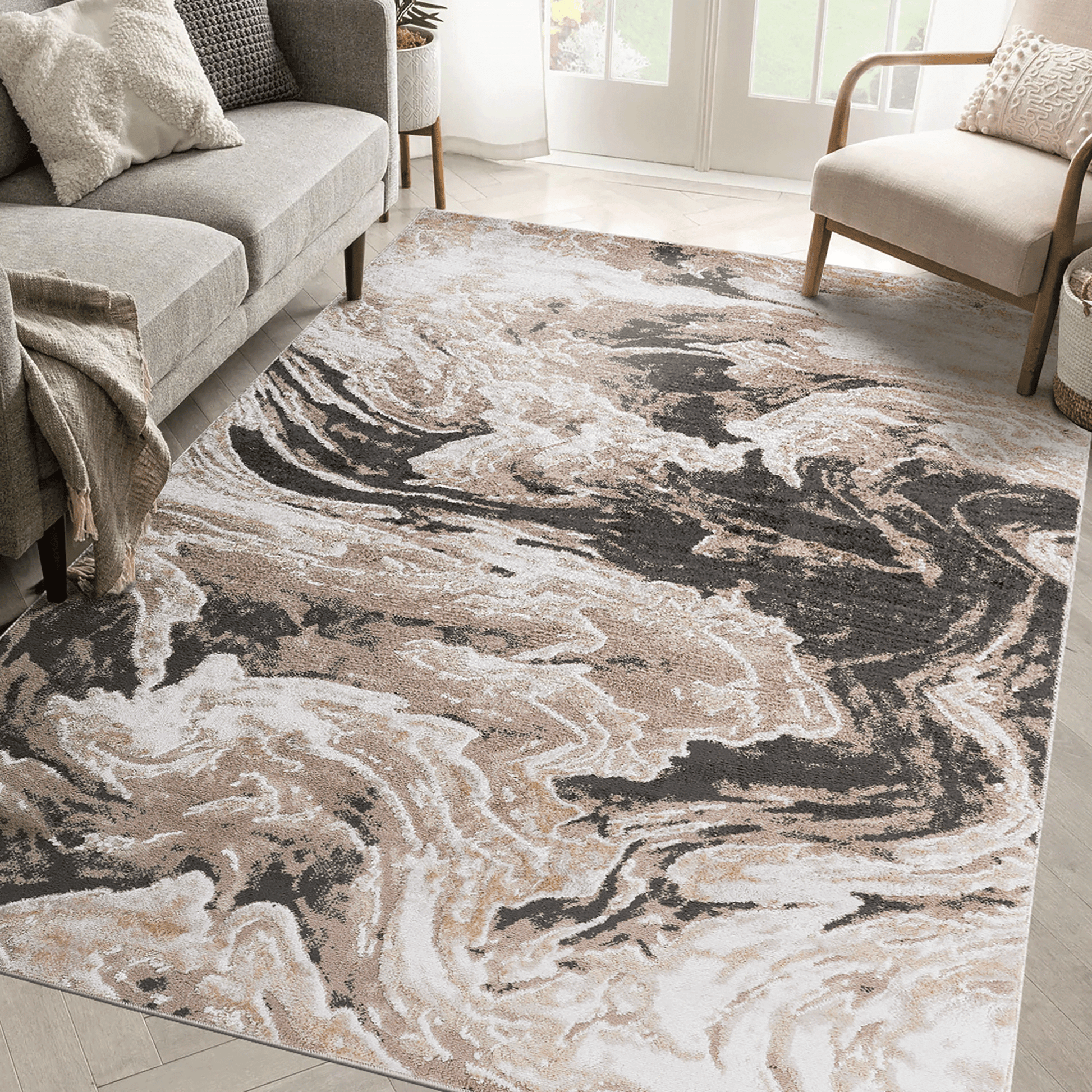 LOOM & LUXE Collection 6X9 L.Brown /Abstract Non-Shedding Living Room Bedroom Dining Home Office Stylish and Stain Resistant Area Rug