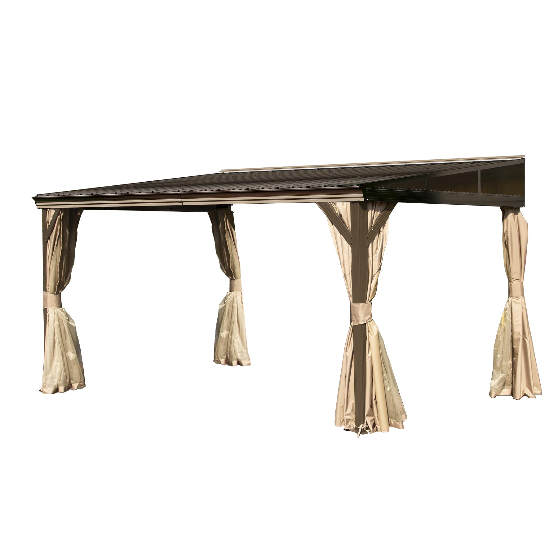 - Extend Space with Wall Mounted Gazebo - The 10’x14’ lean to hardtop gazebo extends your private space to a large extent. Install the domi gazebo at the entrance of your home, you can enjoy your afternoon tea time leisurely. The pc panel on the side can protect you from small rain and partially block the sunlight.