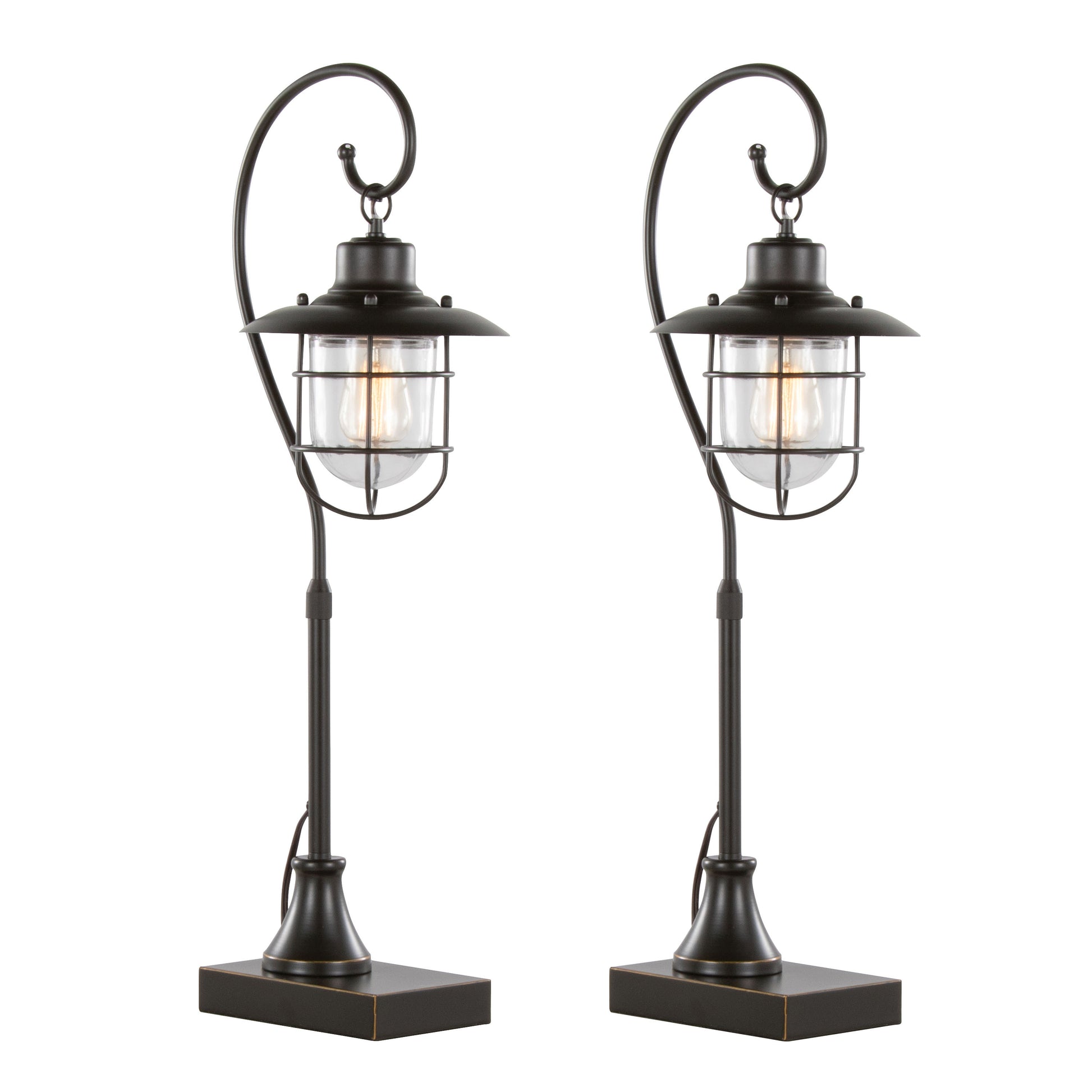 - Add some unique style and illuminate your space with the Landen Task Lamp from Grandview Gallery by LumiSource. With a lantern inspired design, this lamp features a clear glass shade that is caged with sleek metal accents. It also features an adjustable body that allows you to adjust the height to fit your surface. The unique and functional Landen Task Lamp would be the perfect addition to any space!