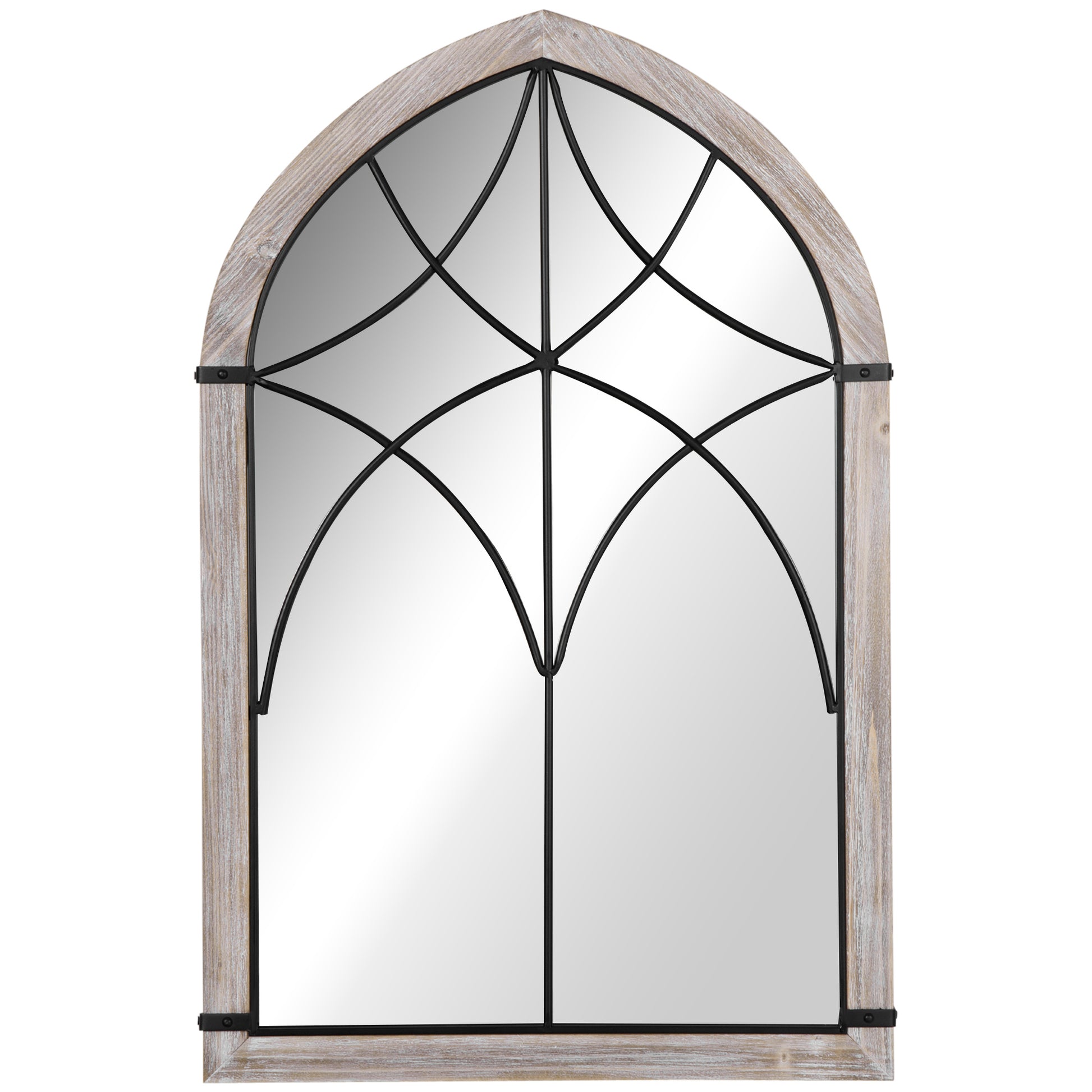HOMCOM 36.5' x 23.5' Large Farmhouse Wall Mirror, Arch Window Mirror for Wall Decor in Living Room, Bedroom, Entryway, Rustic Wood Grain