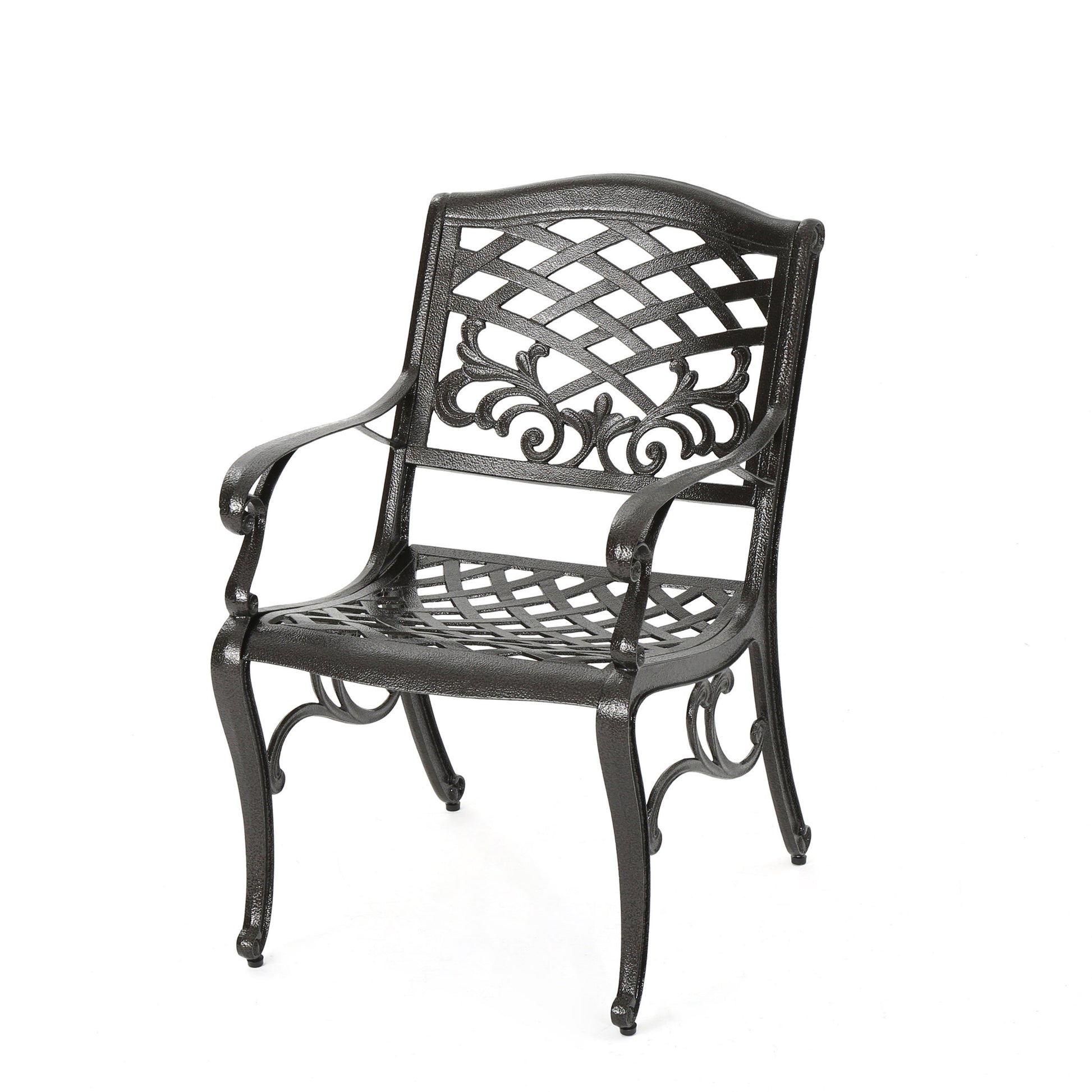 Luminea Outdoor Aluminum Dining Chair with Scroll Design, Lattice Pattern and Cabriole Legs, Bronze