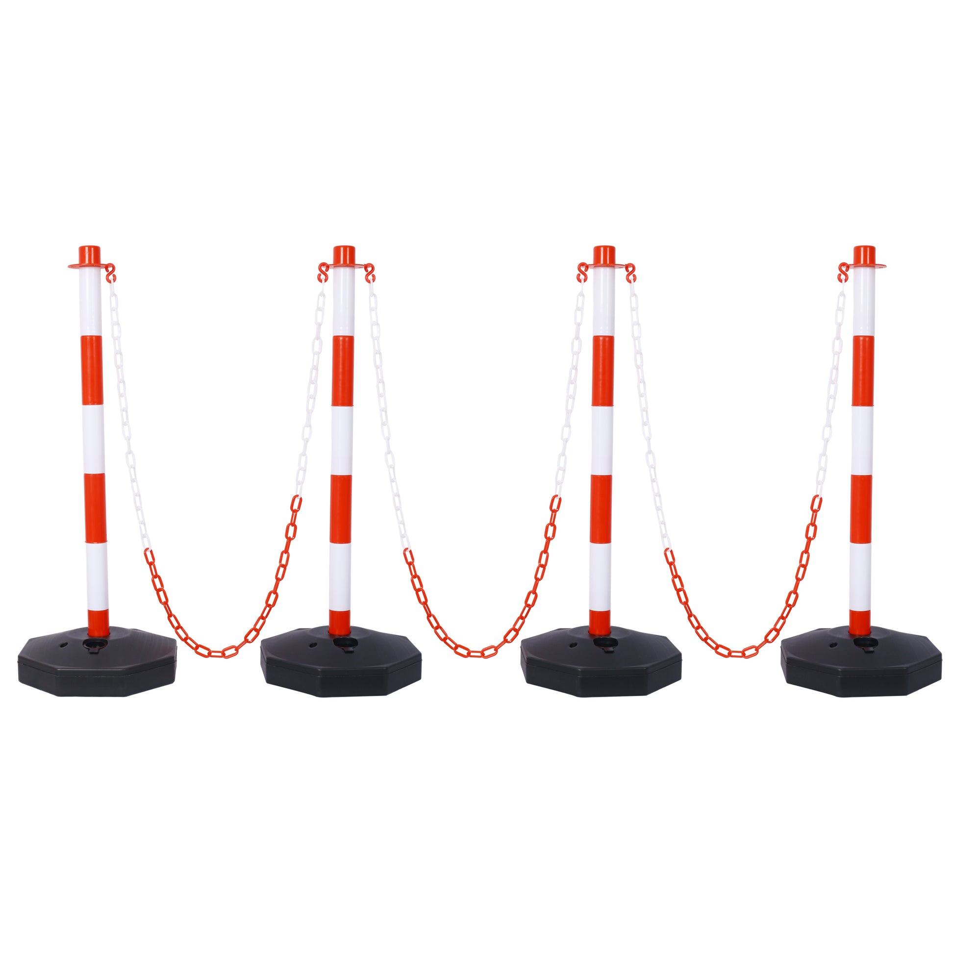 - HIGH-VISIBILITY WARNING COLORS: Designed with White and red stripes to maximize visibility, these stanchions serve as an effective warning signal. Easily connect them using the included S-hooks and chains to create a clear safety barrier.