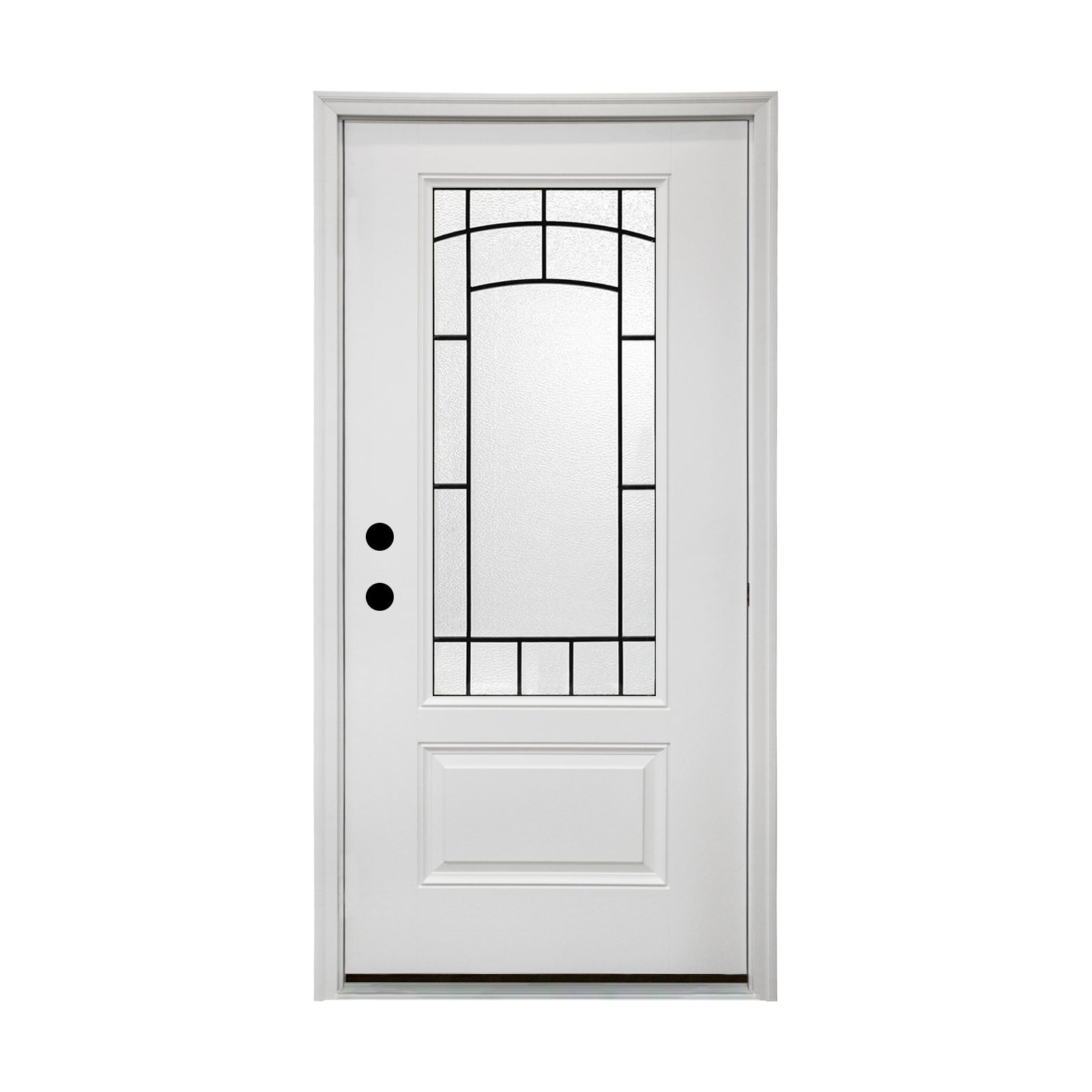 36 x 80 Smooth Fiberglass Entry Door with Brickmould,3/4 View Frosted Glass - Classic Style for Home's Front Entrance, Vinyl Frame, Right Hand Inswing,White Primed Knock-Down Door New Packaging