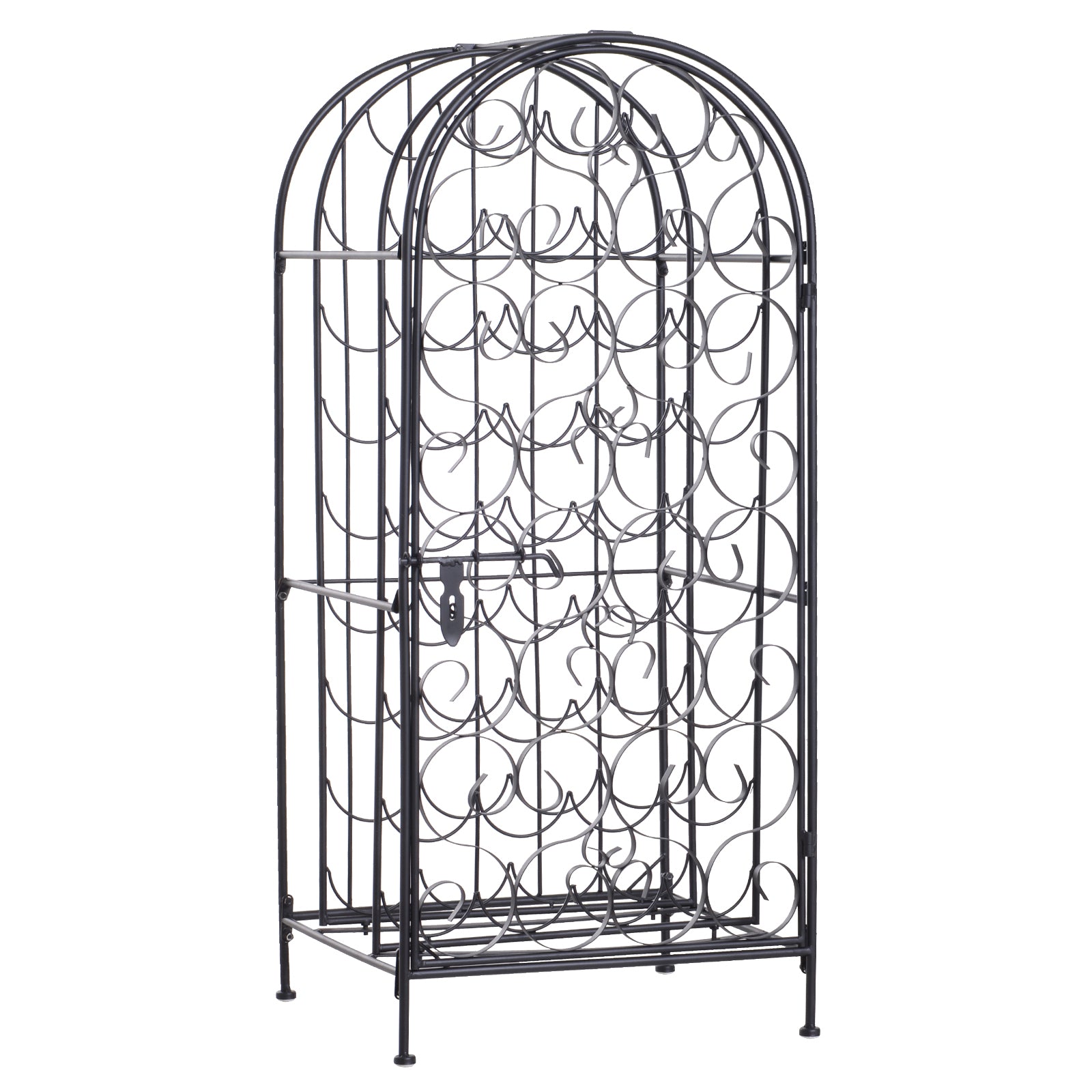 HOMCOM 35 Bottle Wrought Iron Wine Rack Cabinet with Lock - Black