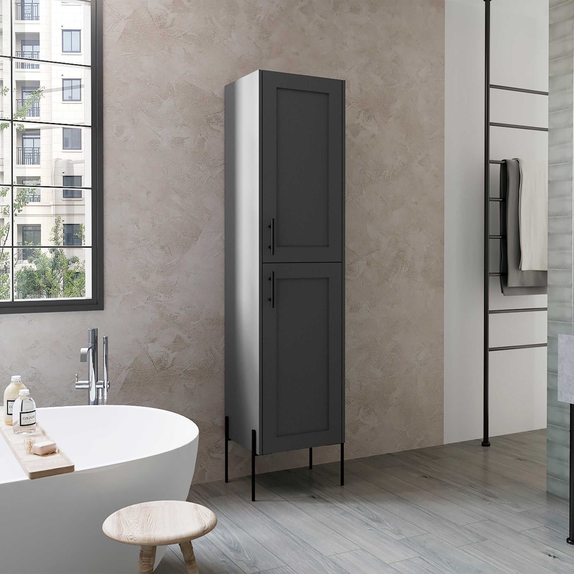 Linen Cabinet 70.8' H, with 1 Door and 4 Shelves, Matt Gray