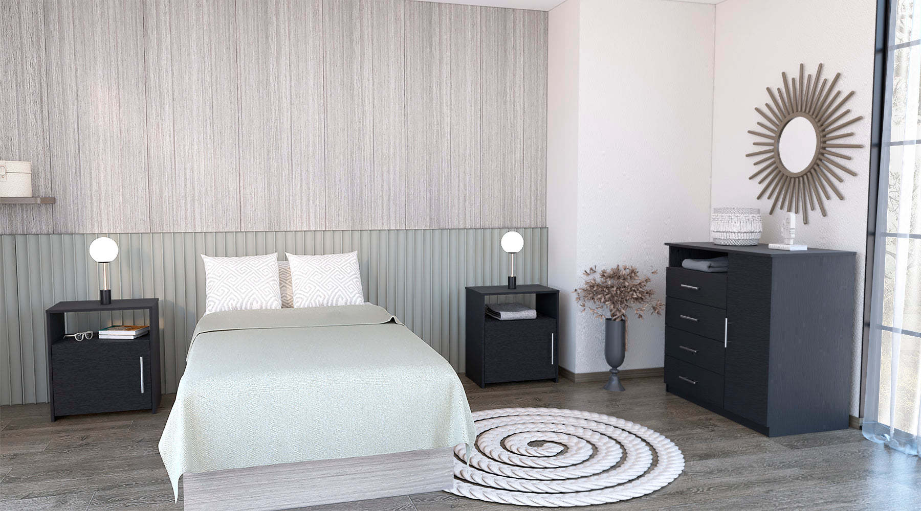 3 Piece Bedroom Set, Rioja 4 Drawer Dresser + 2 Omaha Nightstands, Black