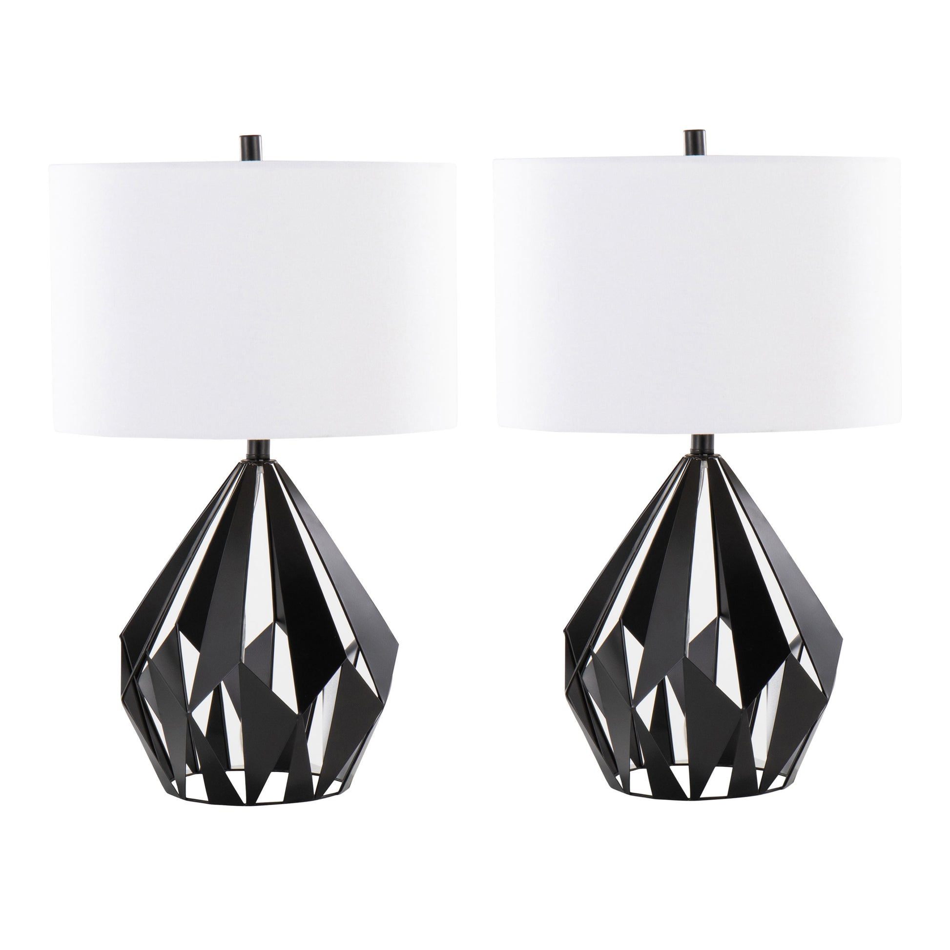 Geome Tri 28' Contemporary Metal Table Lamp in Matte Black Metal with White Linen Shade from Grandview Gallery by LumiSource - Set of 2