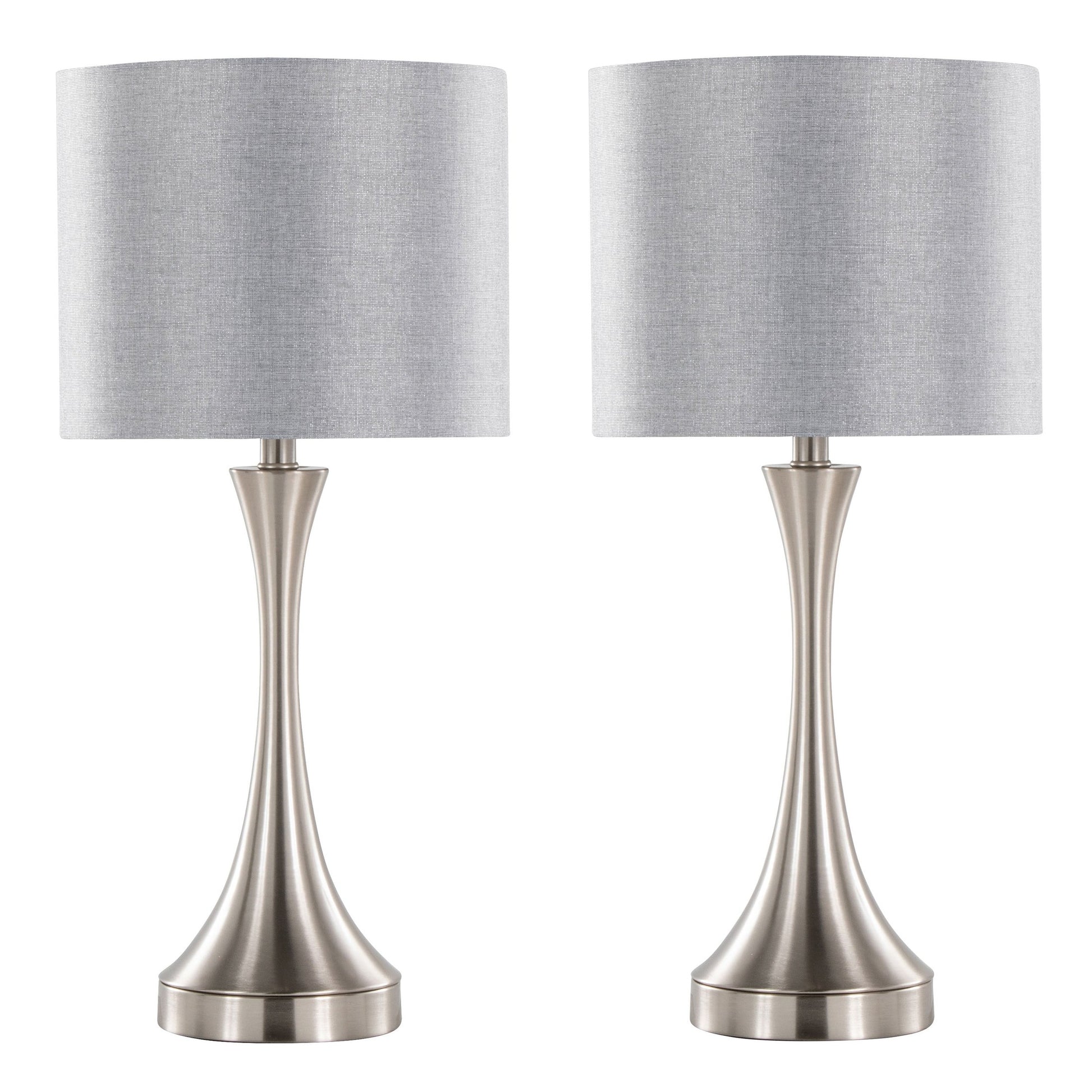 Lenuxe 25' Contemporary Metal Table Lamp in Brushed Nickel with Grey Linen Shade and Built-in USB Port from Grandview Gallery by LumiSource - Set of 2