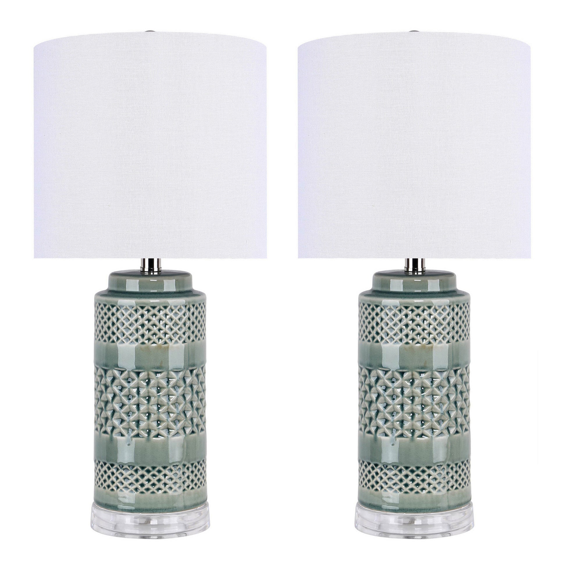 Casa 21' Contemporary Ceramic Table Lamp in Sage Green Crackle Ceramic, Polished Nickel, Clear Acrylic Base and White Linen Shade from Grandview Gallery by LumiSource - Set of 2