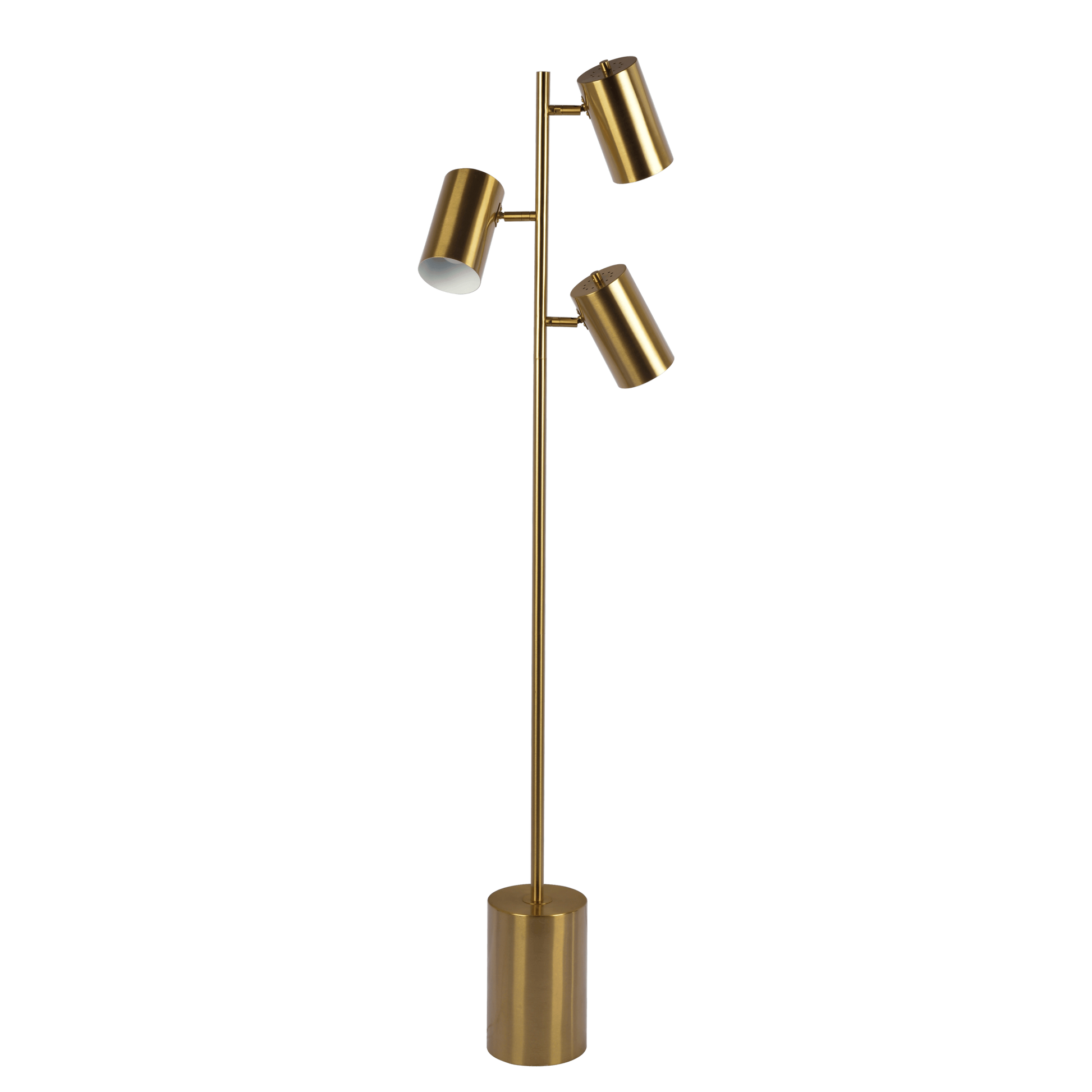 - Harmony Brassed Gold Floor Lamp with Rotary Switch Triple Spots Metal Block Base