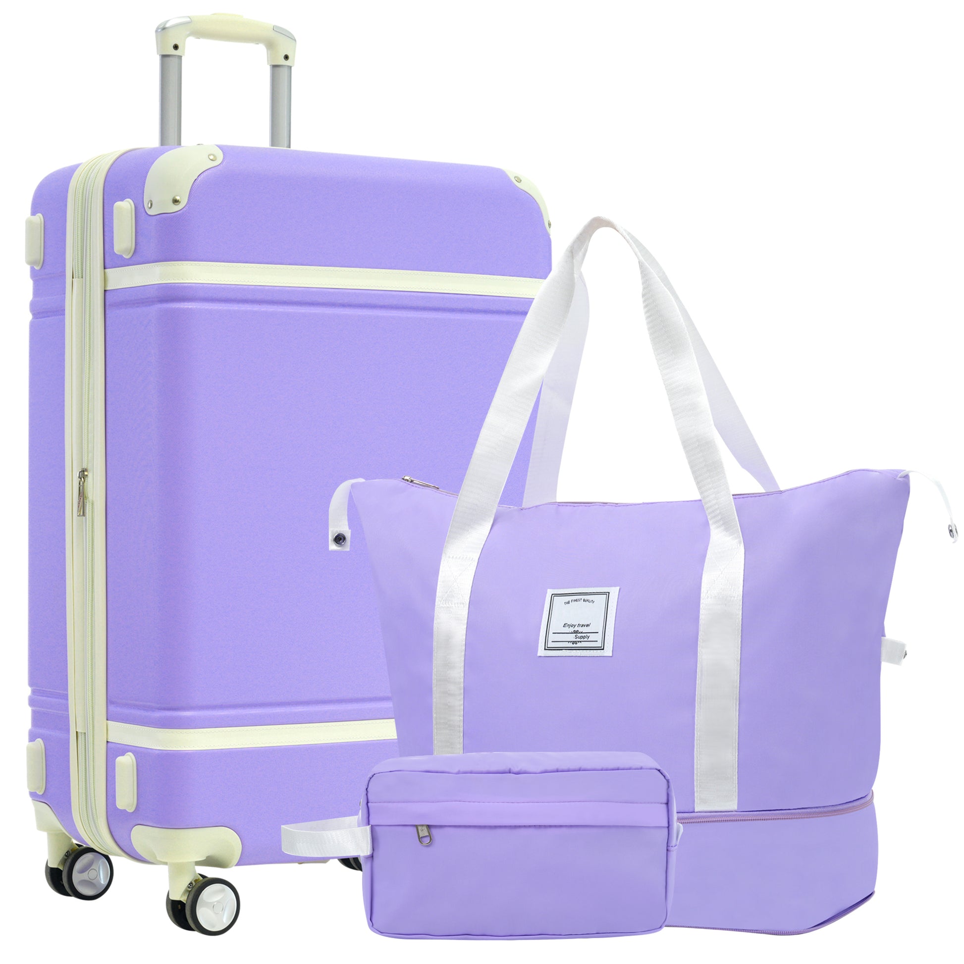 Hardshell Luggage Sets with Bags Lightweight Suitcase Double Spinner Wheels with TSA Lock ,Single Vintage Luggage 28 IN,Purple