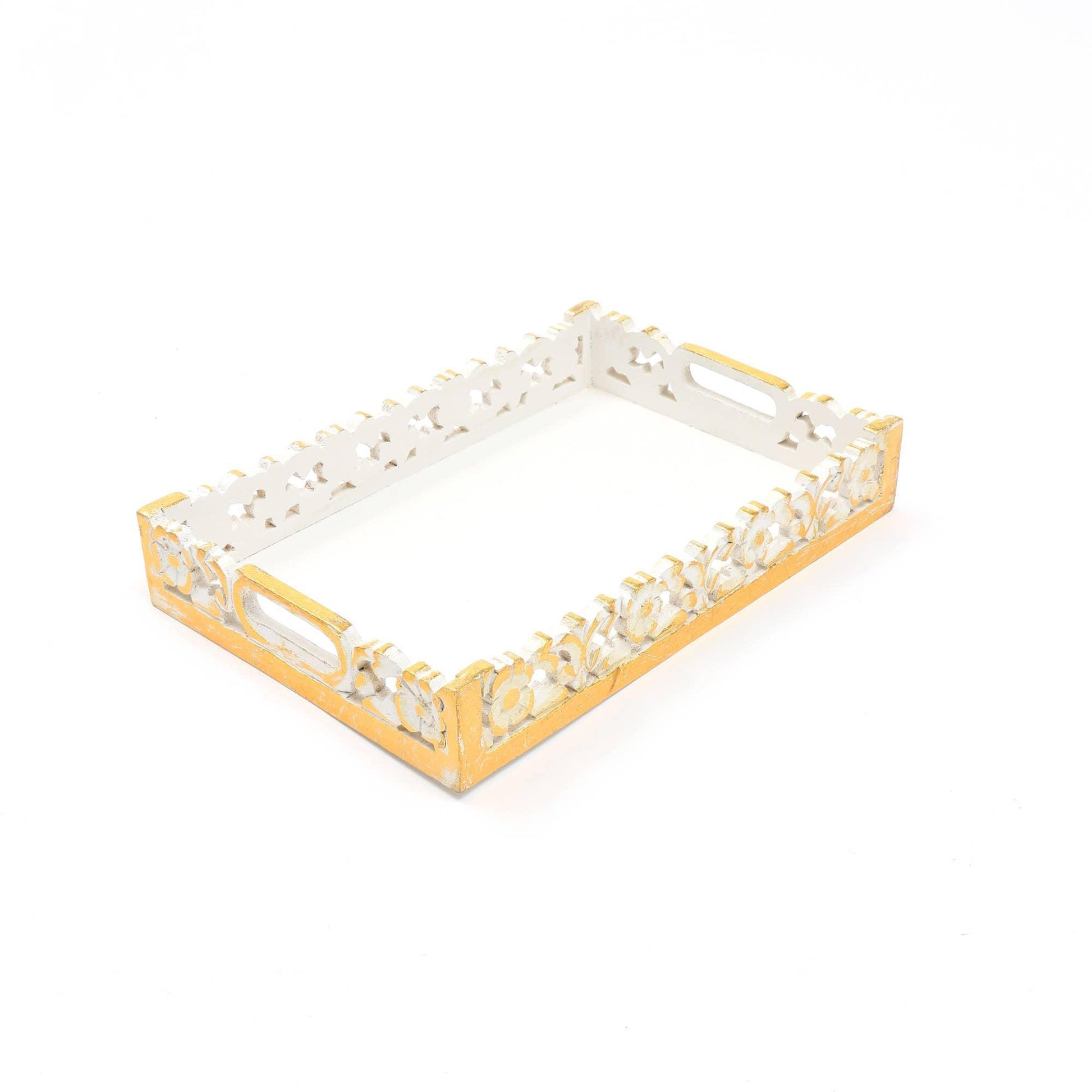Handmade Serving & Decor Mango Wood Rectangle Tray In White Color-18 X 11 X 2.5'
