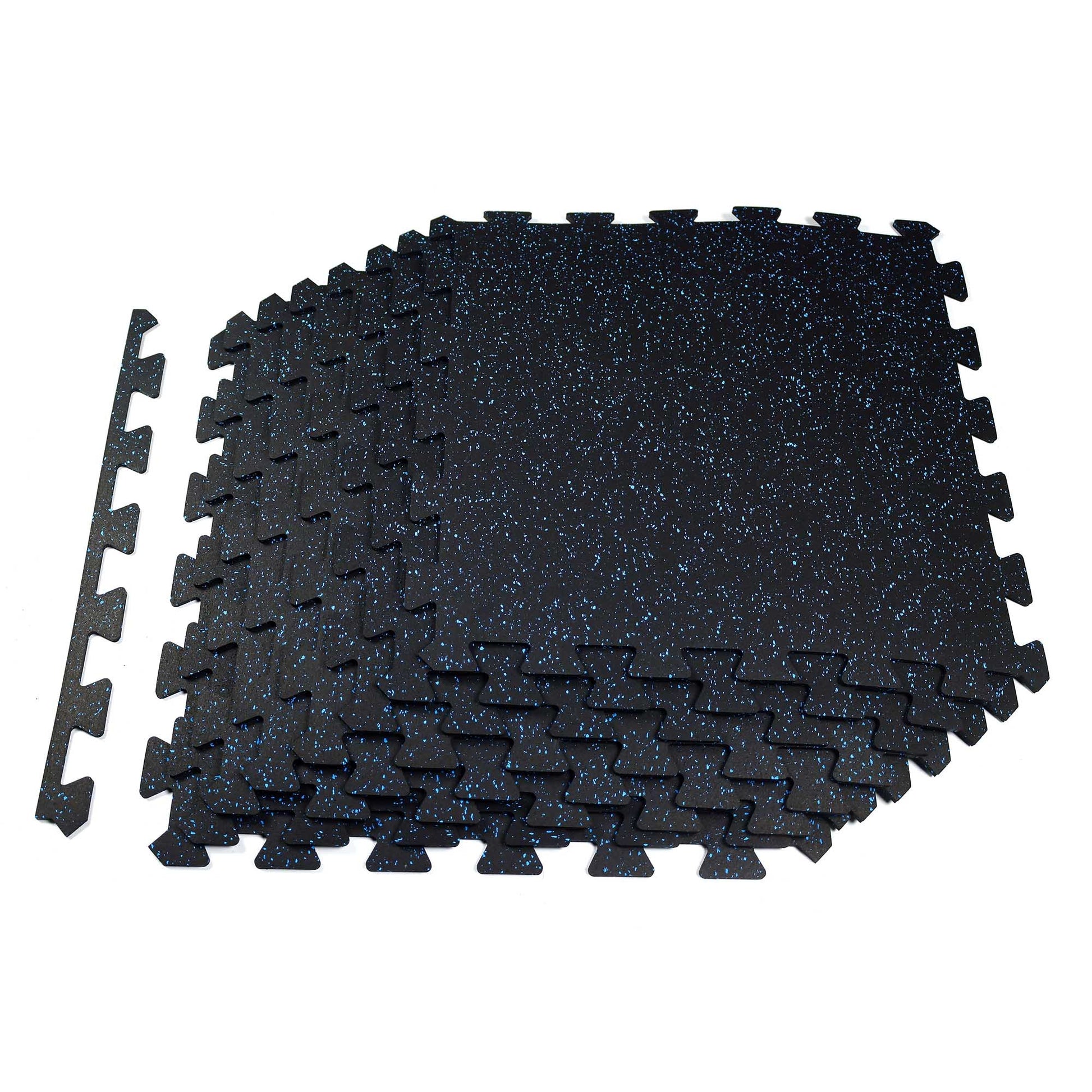 24 in. W x 24 in. L x 0.24 in. Thick Rubber Tile, Gym Flooring Tiles, Black with Blue Flecks (8 Tiles/Case)(32 sq. ft.)