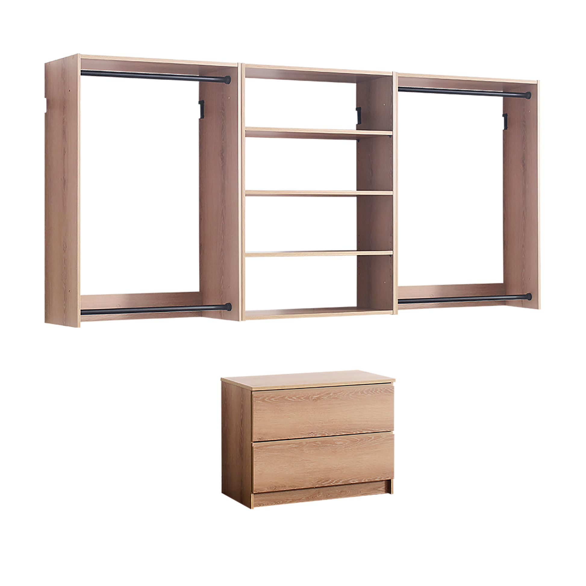 - Warm Oak Finish: The clean oak-colored finish adds a modern and sophisticated touch to your closet room, creating a timeless and stylish atmosphere.
